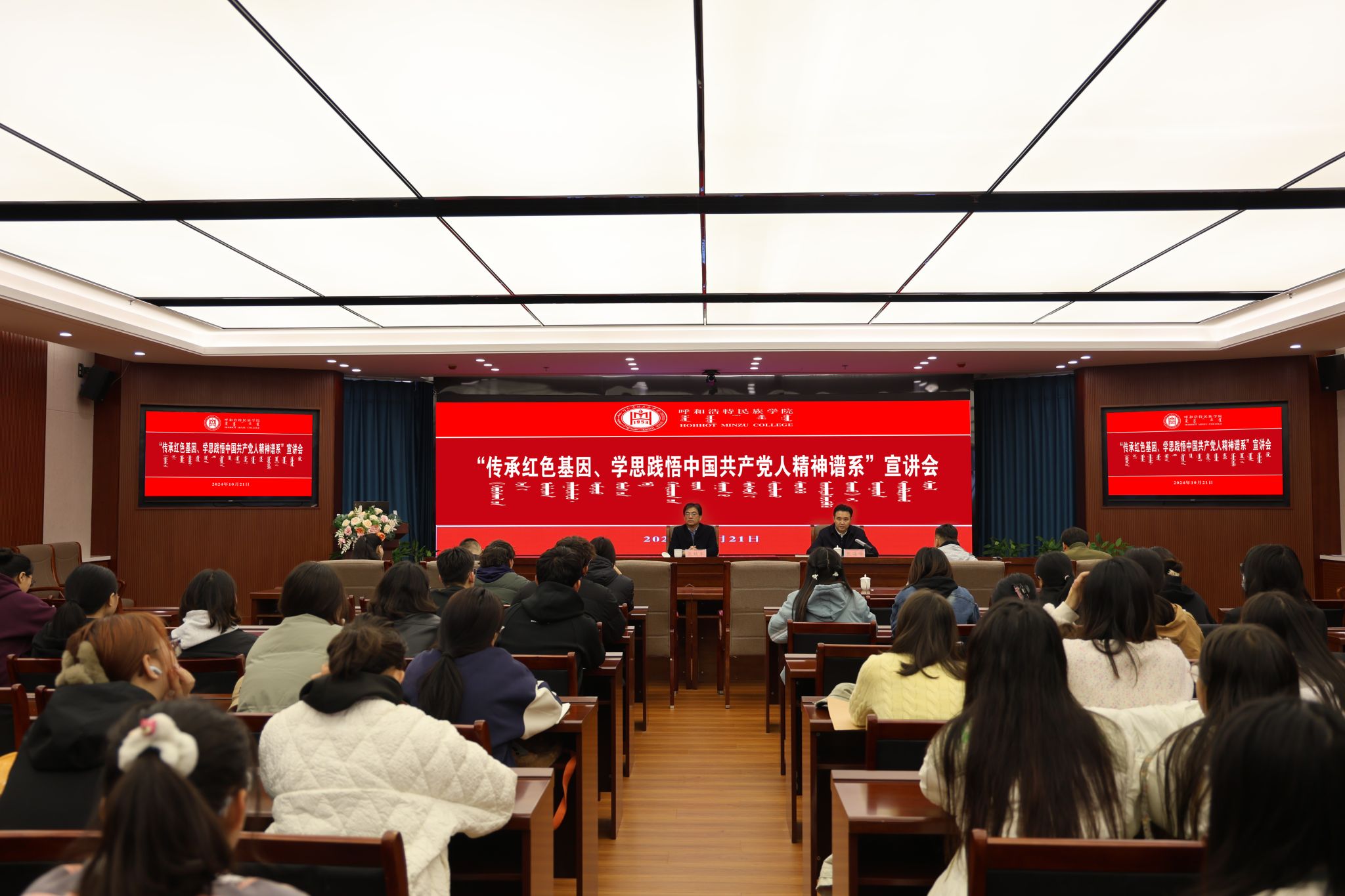 為深入學(xué)習(xí)貫徹習(xí)近平新時代中國特色社會主義思想,傳承和弘揚中國共產(chǎn)黨人精神譜系,常態(tài)長效開展黨史學(xué)習(xí)教育,10月21日,學(xué)校舉辦“傳承紅色基因、學(xué)思踐悟中國共產(chǎn)黨人精神譜系”系列宣講會,邀請自治區(qū)“五一”勞動獎?wù)芦@得者、內(nèi)蒙古師范大學(xué)馬克思主義學(xué)院黨委書記張瑞軍作了專題宣講。蒙古學(xué)學(xué)院、文學(xué)院、外國語學(xué)院、新聞傳媒學(xué)院、教育學(xué)院、音樂與舞蹈學(xué)院等六個學(xué)院的120余名師生代表參會。會議由校黨委宣傳部部長張海峰主持。