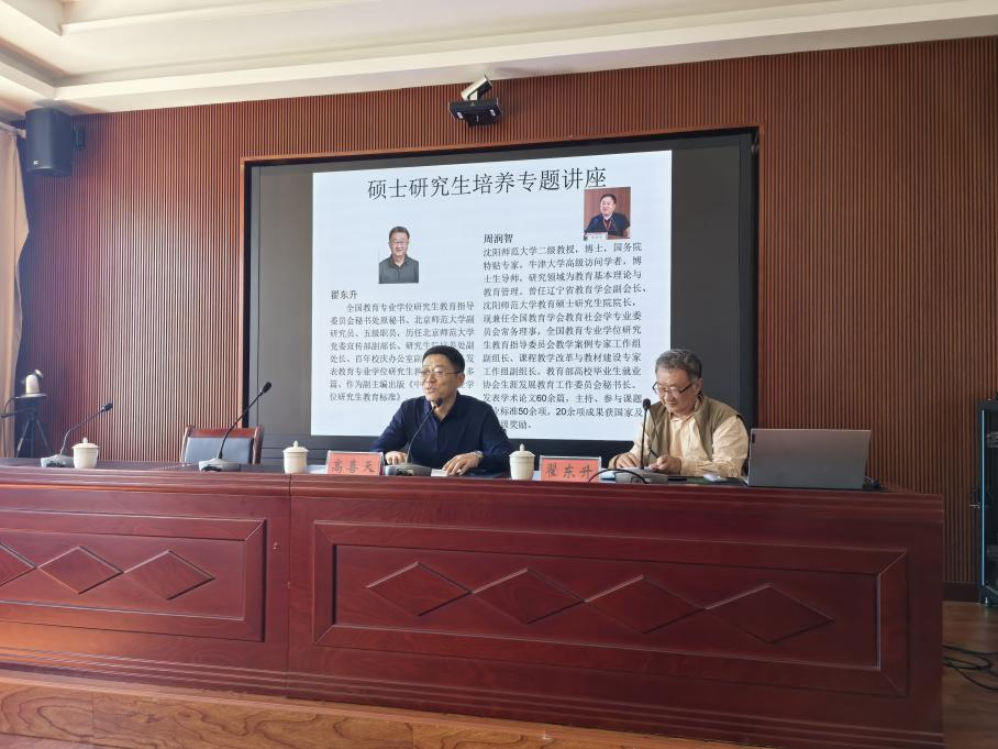 為進一步做好我校研究生招生和培養工作,9月22日,學校邀請全國教育專業學位研究生教育指導委員會秘書處原秘書、北京師范大學副研究員翟東升、沈陽師范大學二級教授周潤智來校作研究生培養專題講座。校黨委委員、副校長高喜天主持講座。