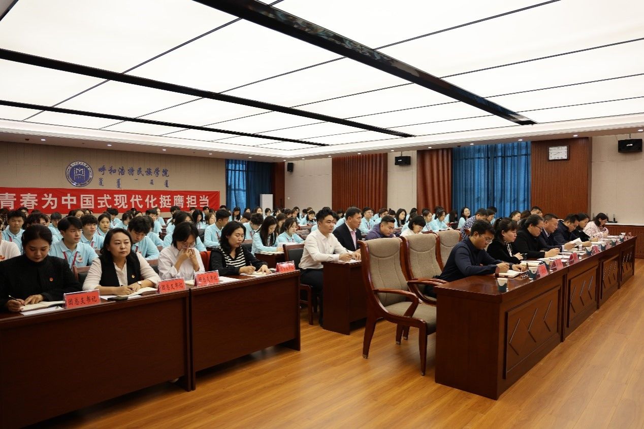 劉九萬號召,廣大呼民院青年學子要堅定不移聽黨話、跟黨走,爭做有理想、敢擔當、能吃苦、肯奮斗的新時代好青年,用腳步丈量祖國大地,用眼睛發現中國精神,用耳朵傾聽人民呼聲,用內心感應時代脈搏,把對祖國血濃于水、與人民同呼吸共命運的情感貫穿學業全過程,展現青春作為、彰顯青春風采、貢獻青春力量,奮力書寫為中國式現代化挺膺擔當的青春篇章。