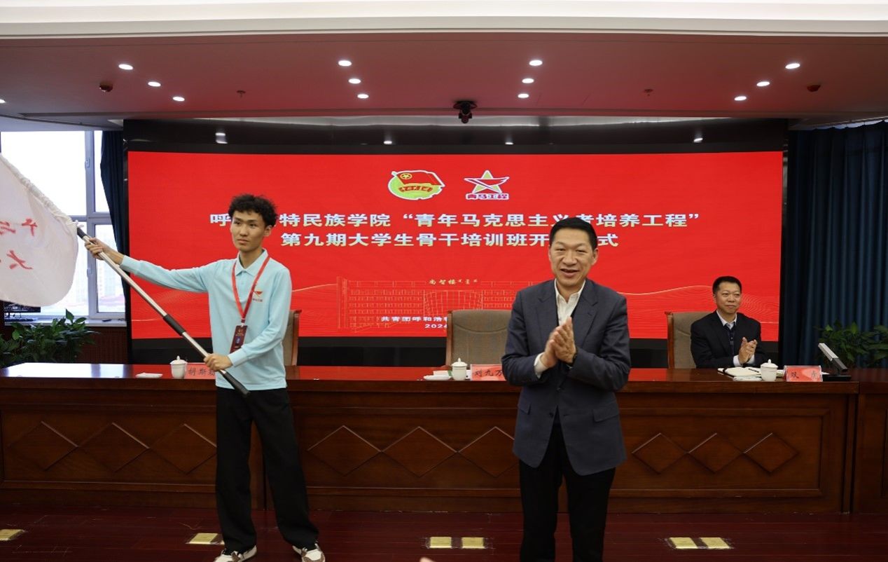 開班式上,劉九萬為本期培訓班授旗,并以《篤行致遠 不負韶華,奮力書寫為中國式現代化挺膺擔當的青春篇章》為題講授了專題思政課。他說,新時代呼民院青年要進一步深入學習貫徹黨的二十屆三中全會精神,從時代維度,充分認識當代青年成長發展所面臨的復雜環境與嚴峻形勢,堅定對馬克思主義的信仰、對中國特色社會主義的信念、對中華民族偉大復興的信心,努力成為鑄牢中華民族共同體意識的播種者和傳播者,為強國建設、民族復興偉業作出應有貢獻。