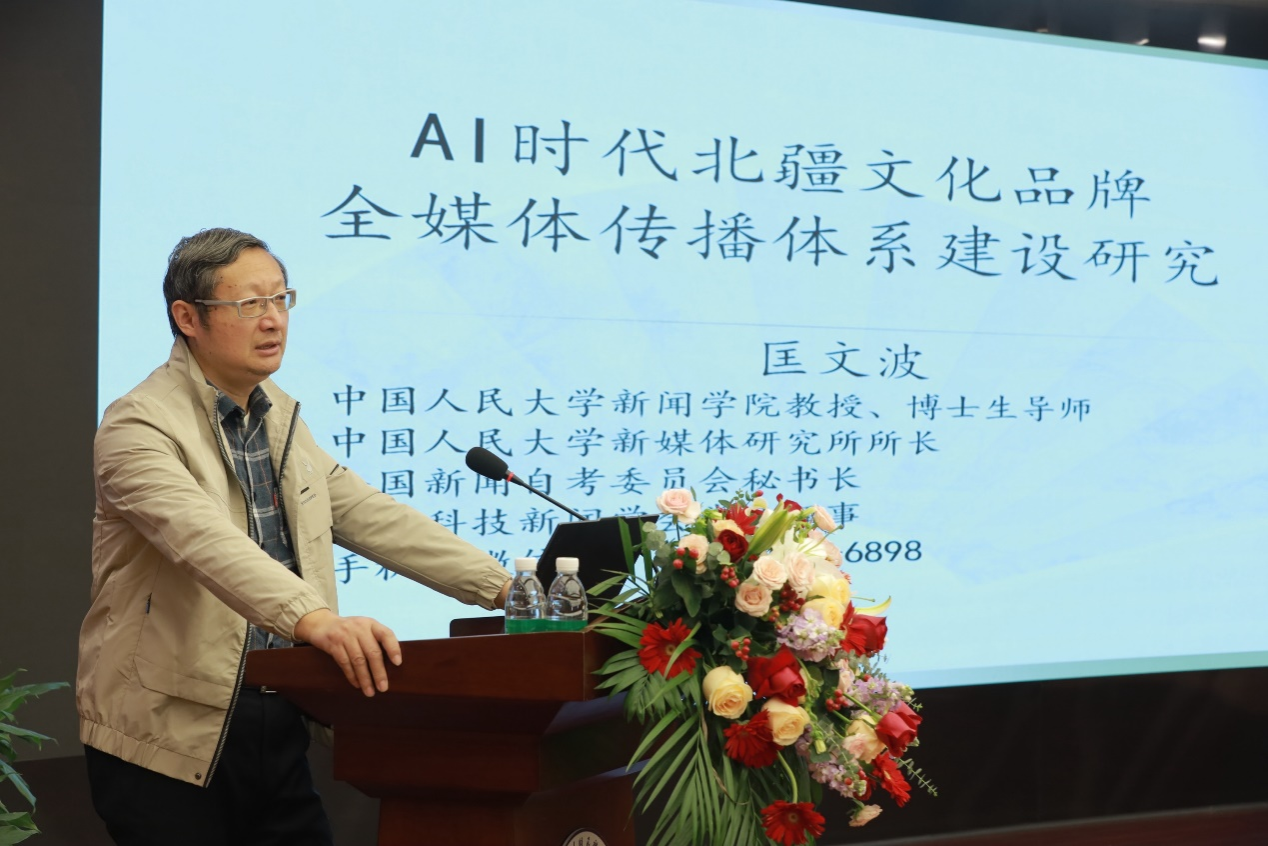 主旨發言環節,國家哲學社會科學領軍人才、中國社會科學院朝克教授以“鑄牢中華民族共同體意識視域下內蒙古三少民族旅游產業發展研究”為題,教育部長江學者、內蒙古大學烏云畢力格教授以“洲際使團與民族文化交往:十七世紀伏爾加河流域土爾扈特人使團與世界地理知識的傳播”為題,蘭州大學二級教授徐黎麗以“如何提升阿爾山-松貝爾口岸發展理念”為題,教育部新世紀優秀人才、中國人民大學特聘教授匡文波以“Al時代北疆文化品牌全媒體傳播體系建設研究”為題,呼和浩特民族學院二級教授包賽吉拉夫以“鑄牢中華民族共同體意識視域下保護傳承北疆非遺的理論與實踐探索---以呼和浩特民族學院為例”為題依次作了主旨發言。