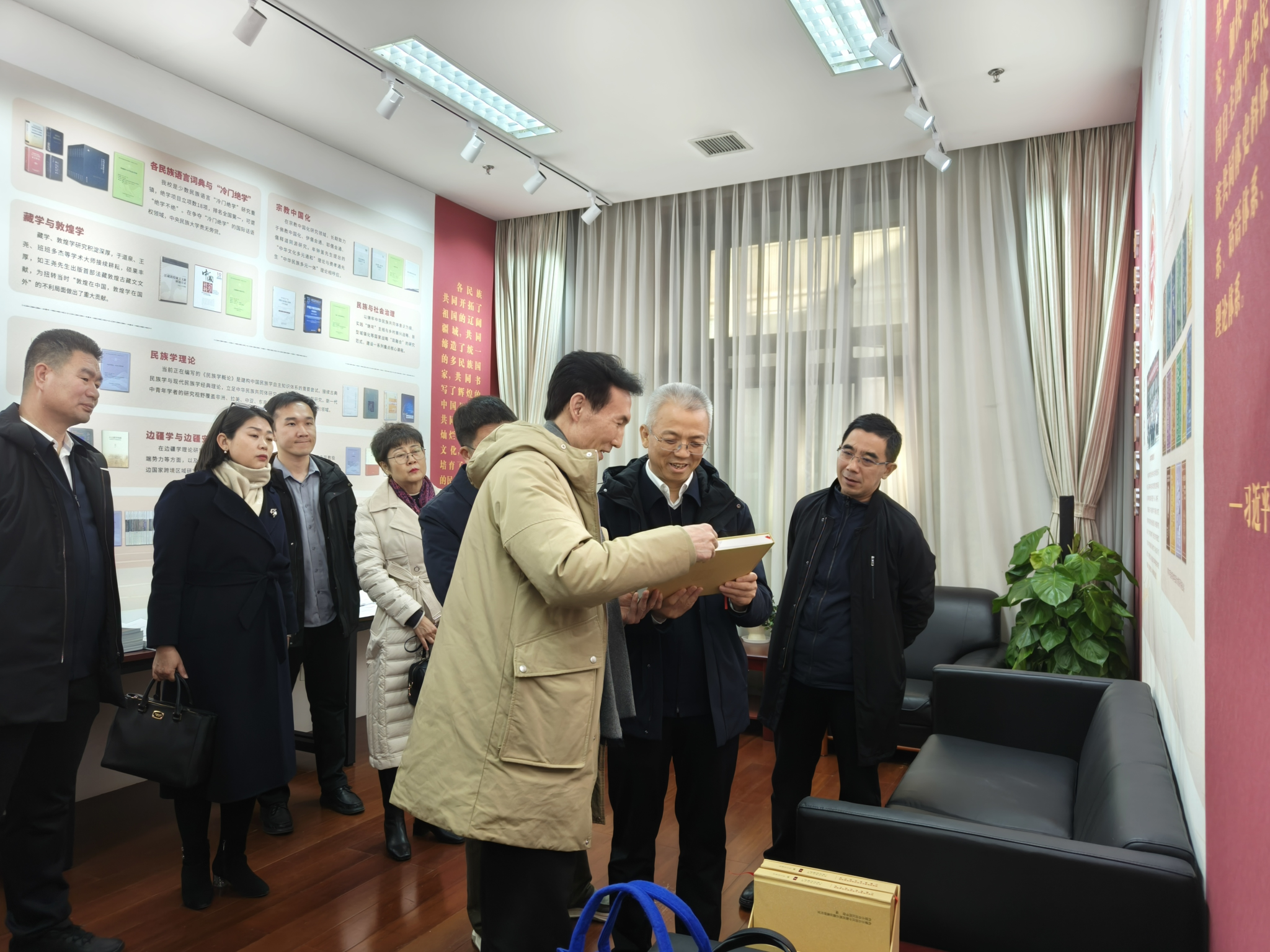 會前,調研組在中央民族大學黨委副書記、校長強世功帶領下共同參觀考察中央民族大學鑄牢中華民族共同體意識基地,學習了解中華民族共同體學科建設與理論研究的成果。
