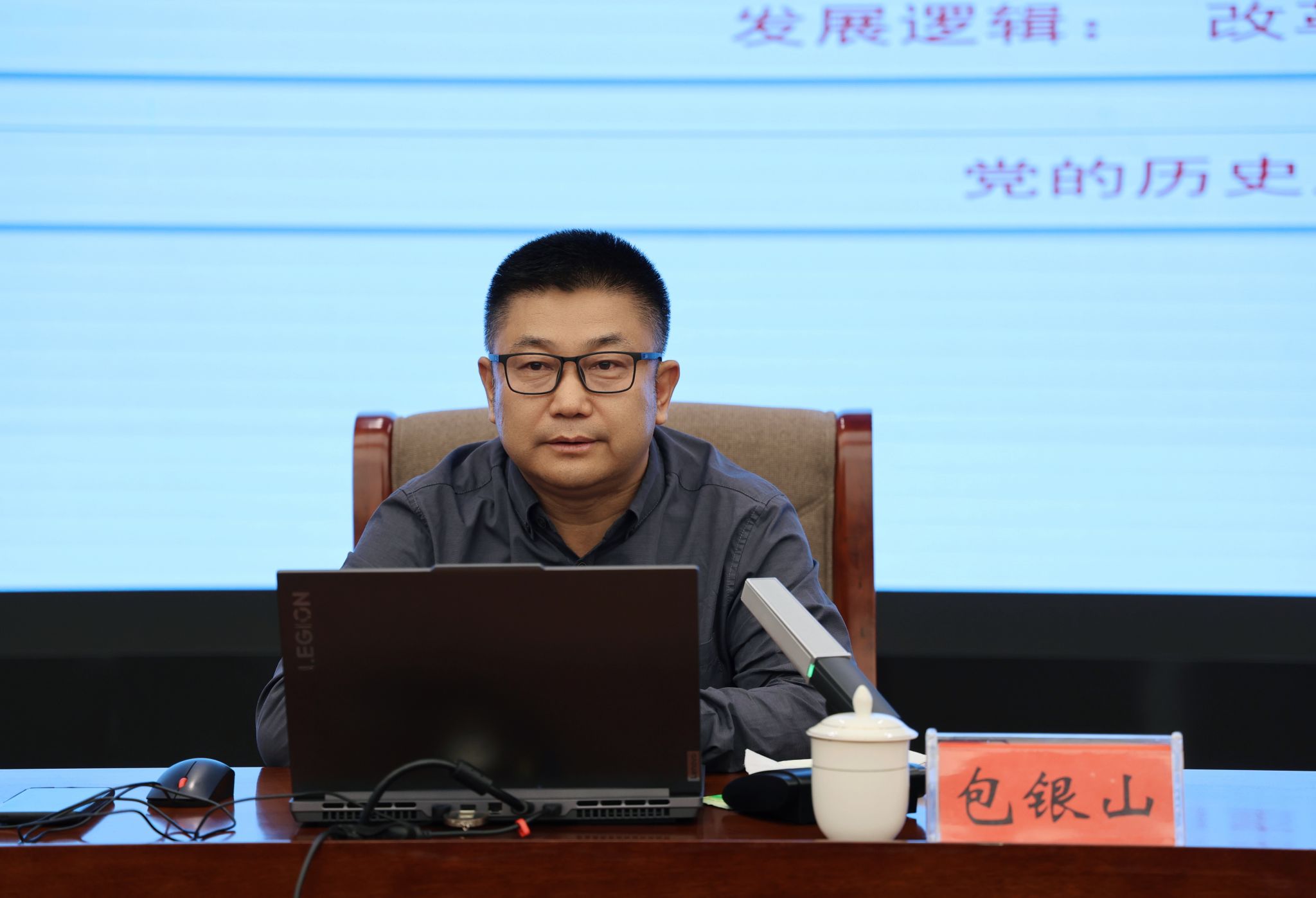 為深入學習貫徹黨的二十屆三中全會精神,把思想和行動統一到黨中央的決策部署上來,9月14日,學校召開黨委理論學習中心組(擴大)第十一次集體學習會,邀請內蒙古黨校副校長包銀山教授作專題輔導報告。校黨委書記劉九萬出席會議,黨委理論學習中心組成員、全體處級干部、思政課教師代表參會。會議由校黨委副書記格根哈斯主持。