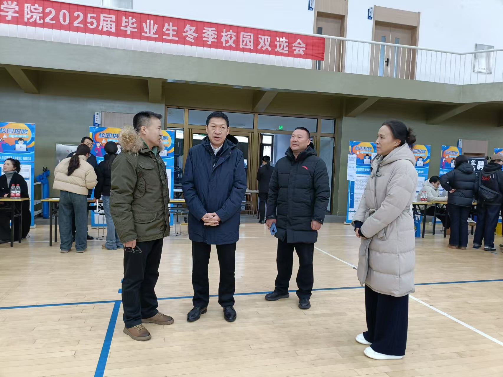 12月20日,我校在南校區籃球館舉辦“百城千校萬企”促就業行動冬季校園雙選會,校黨委書記劉九萬,黨委委員、副校長額爾敦布和深入雙選會現場與參會企業和畢業生親切交流,對用人單位的崗位需求、畢業生的就業意向進行了溝通了解。