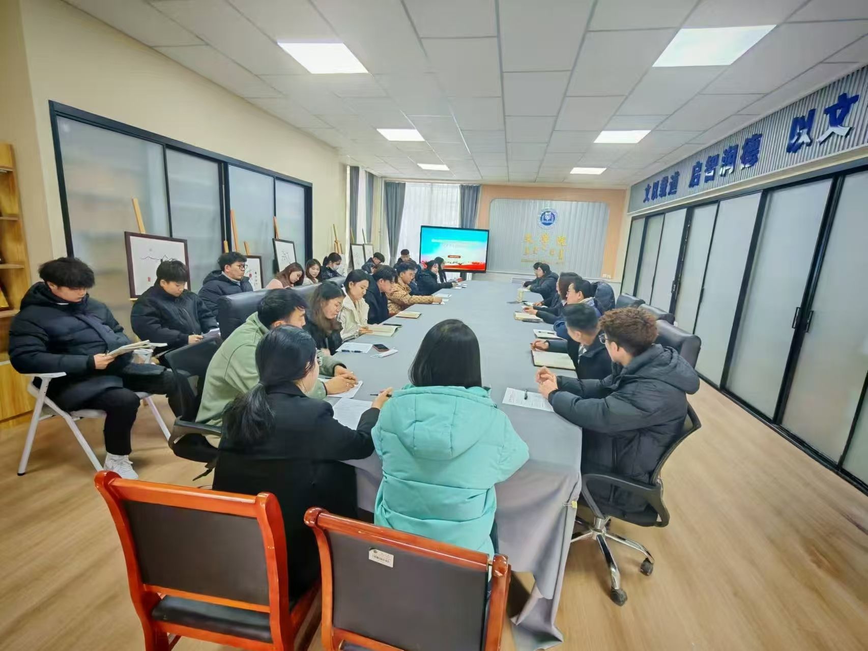 12月19日,文學(xué)院舉辦“墨韻啟思,職引新程”就業(yè)培訓(xùn)分享暨學(xué)情調(diào)研座談會(huì)。校黨委委員、副校長(zhǎng)劉瑞鴻出席活動(dòng),文學(xué)院院長(zhǎng)高娃、副書記包冬梅、漢語(yǔ)國(guó)際教育專業(yè)負(fù)責(zé)人閆博、專職輔導(dǎo)員寶力爾以及文學(xué)院各班級(jí)班長(zhǎng)和學(xué)生代表參加座談會(huì),會(huì)議由包冬梅主持。