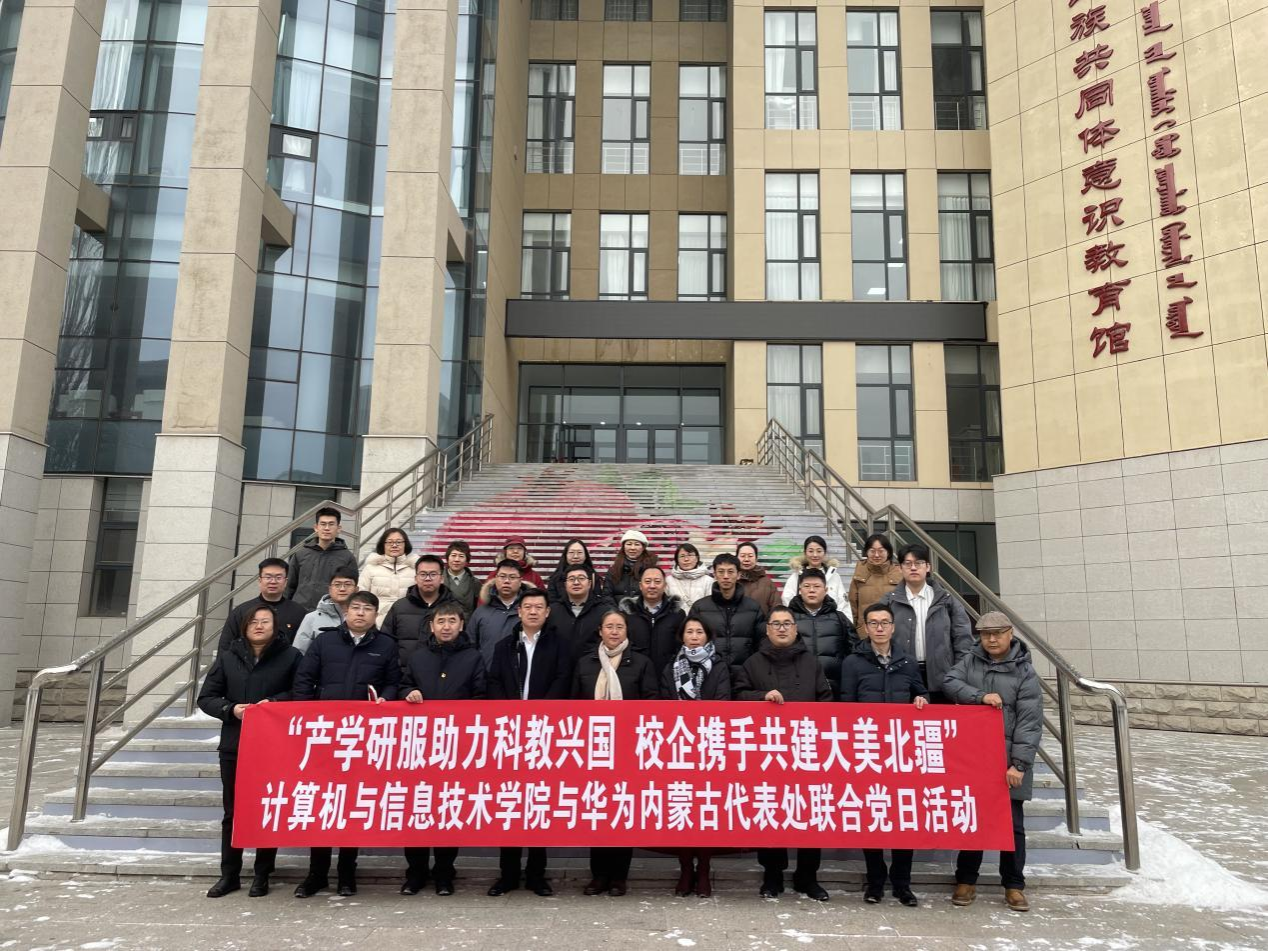 為加強校企聯動促黨建,12月19日,計算機與信息技術學院教工黨支部與華為內蒙古代表處黨支部聯合開展了以“產學研服助力科教興國 校企攜手共建大美北疆”為主題的黨日活動。校黨委委員、紀委書記、監察專員王冬梅,華為內蒙古代表處副總經理郝曙平出席活動并致辭。華為內蒙古代表處全體黨員、計算機與信息技術學院教工黨支部全體黨員參加活動。