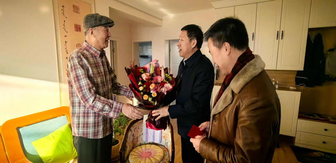 新春暖意至,歲寒情更濃。在農(nóng)歷蛇年新春佳節(jié)來(lái)臨之際,1月21-23日,校黨委書(shū)記劉九萬(wàn),黨委副書(shū)記格根哈斯,黨委委員、紀(jì)委書(shū)記、監(jiān)察專(zhuān)員王冬梅,黨委委員、副校長(zhǎng)高喜天、劉瑞鴻、額爾敦布和、雙虎在黨政辦公室、組織部、宣傳部、離退休人員工作處等有關(guān)部門(mén)負(fù)責(zé)同志陪同下深入離退休老領(lǐng)導(dǎo)、老干部、老黨員家中走訪慰問(wèn),送去節(jié)日的問(wèn)候和新春的祝福。