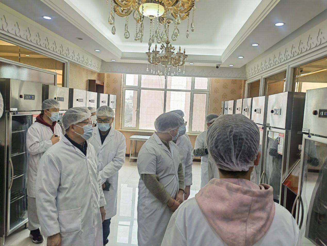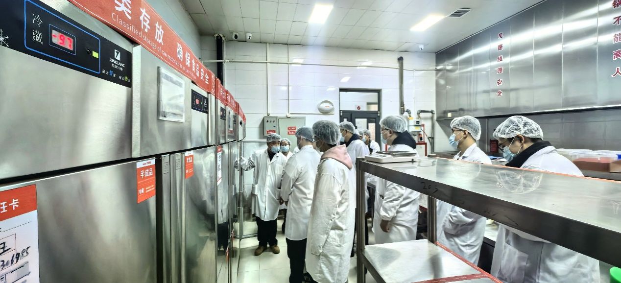 參會人員深入食堂一線,詳細了解食堂運營模式、餐具洗消程序、原材料采購、留樣管理、加工制作、供餐環(huán)節(jié)及“互聯(lián)網(wǎng)+明廚亮灶”的情況。在食堂后廚詳細查看了設(shè)備設(shè)施、食品保質(zhì)期、衛(wèi)生清潔、人員健康、場地消毒、制度建設(shè)、價格監(jiān)管及水電氣安全管理等情況。