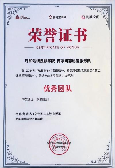 近日,在“弘揚新時代雷鋒精神,投身新征程志愿服務(wù)”第二課堂系列活動中,我校商學(xué)院“雷鋒精神志愿服務(wù)團(tuán)”出色完成各項實踐任務(wù),被評為全國“優(yōu)秀團(tuán)隊”。