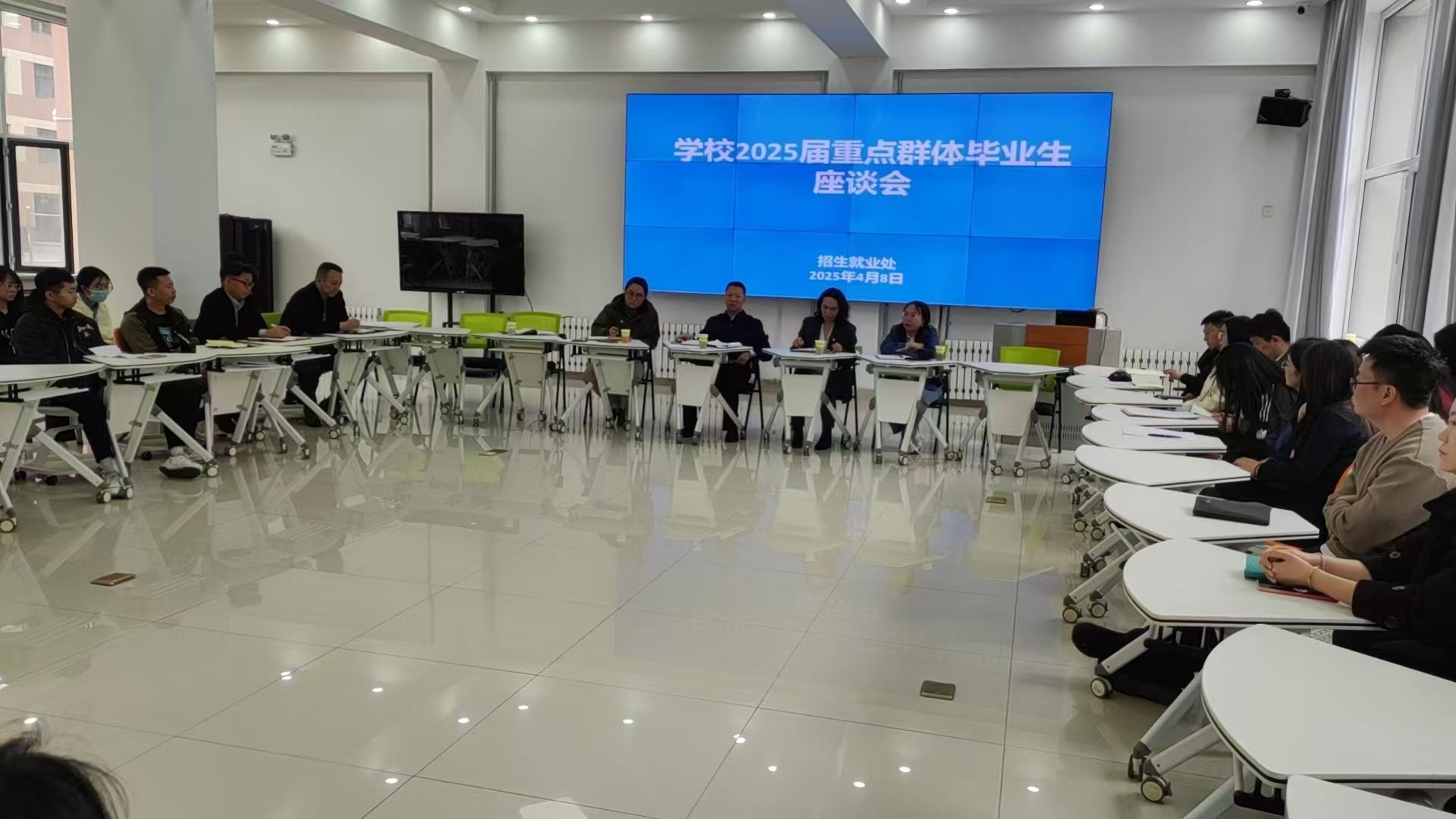4月8日,學校在創(chuàng)業(yè)樓舉行2025屆重點群體畢業(yè)生代表座談會。校黨委委員、副校長雙虎出席會議并講話,重點群體畢業(yè)生代表、輔導員、招生就業(yè)處全體人員共60人參加。