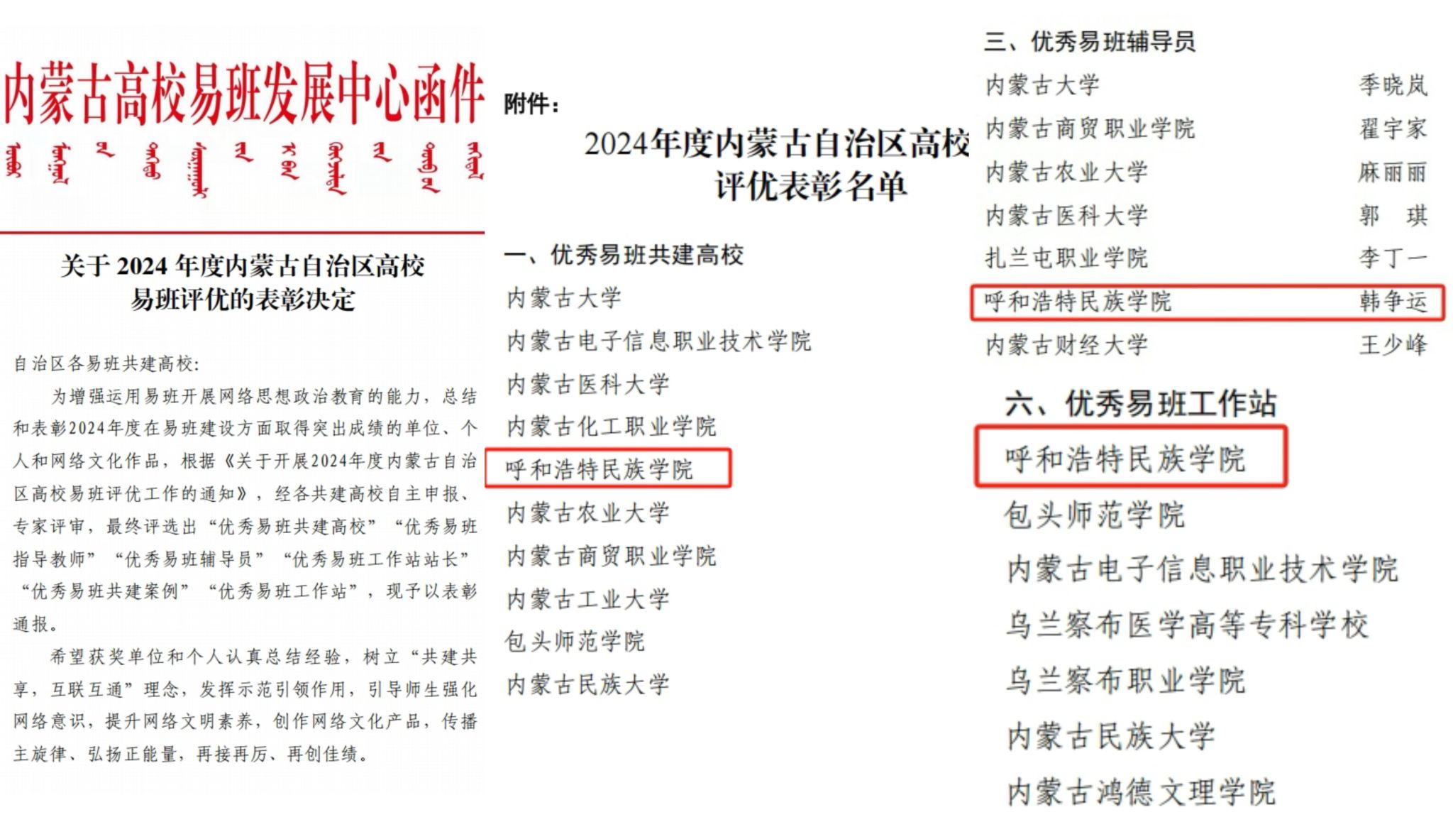 近日,2024年度內蒙古自治區高校易班評優結果公布。我校獲評“優秀易班共建高校”,這也是我校連續四年獲評此榮譽;校易班工作站獲評“優秀易班工作站”;智能科學學院團總支書記韓爭運被評為“優秀易班輔導員”。