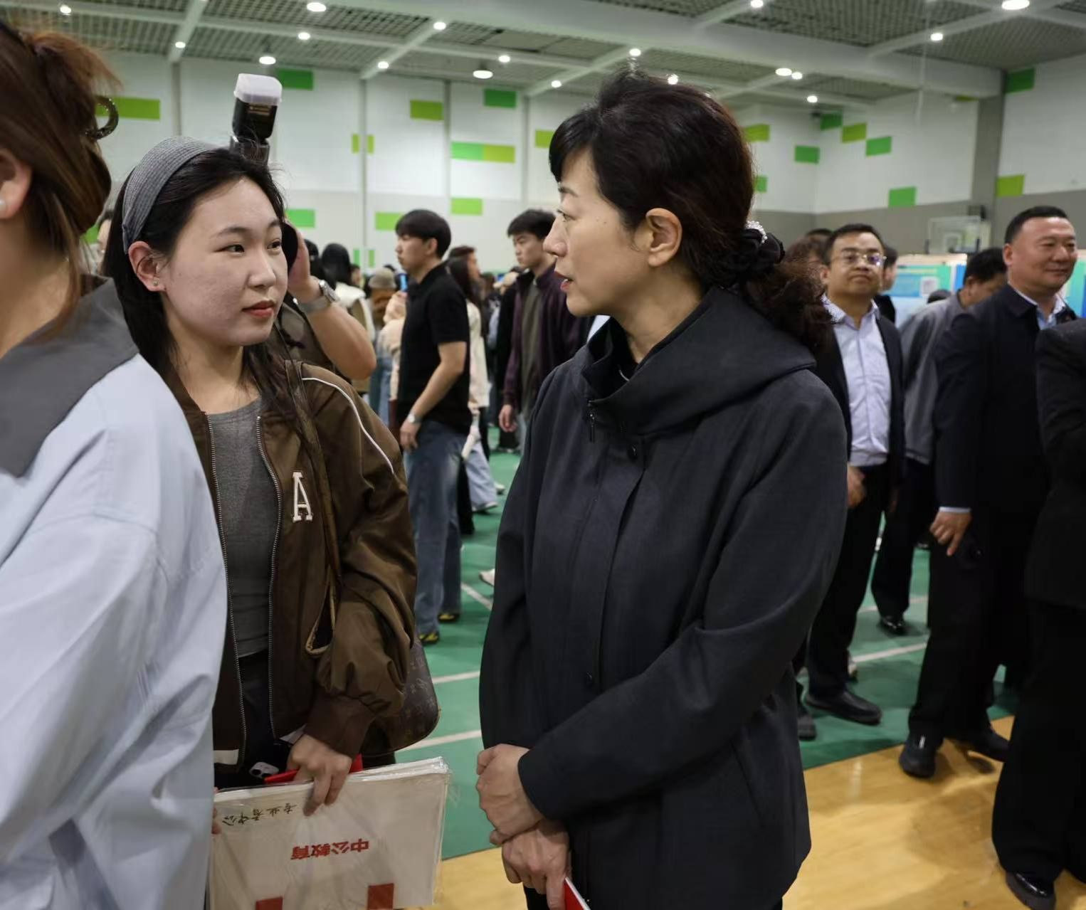 招聘會期間,校黨委副書記、校長王敏,黨委委員、紀委書記、監察專員王冬梅,黨委委員、副校長額爾敦布和、雙虎等校領導深入招聘會現場,了解用人單位崗位需求,并與求職畢業生作現場交流,鼓勵她們積極就業。