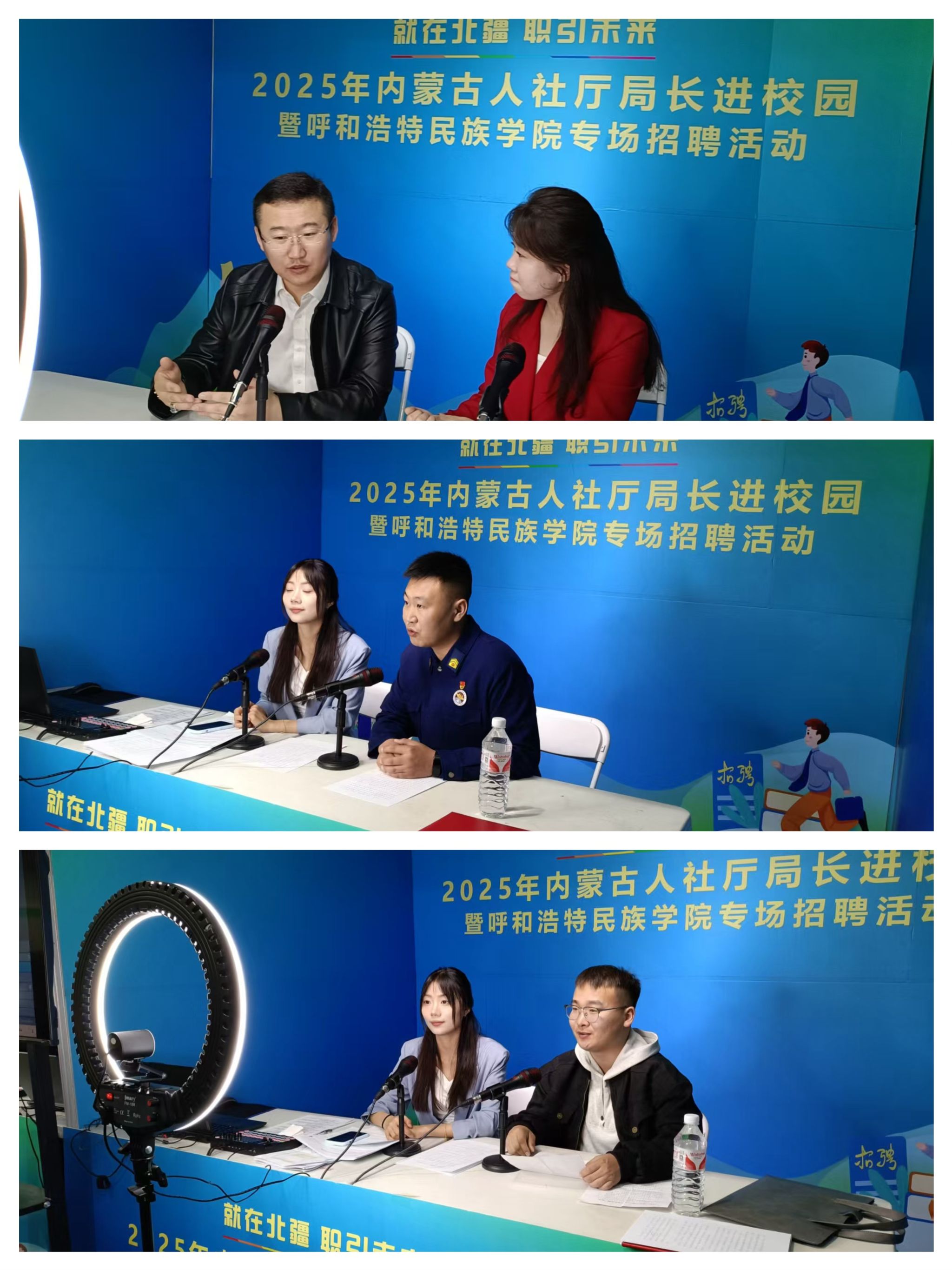 作為就業指導系列活動的重要組成部分,我校2013屆畢業生斯欽圖力古爾(內蒙古蒙科立科技股份有限公司執行總經理)、2017屆畢業生李海林(全國2023-2024年度“高校畢業生基層就業卓越獎學金”獲得者)、2023屆畢業生狄武文(興安盟阿爾山市西部計劃志愿者)做客直播間,圍繞"職業選擇""創業突圍""職場適應"等主題開展云端經驗分享,通過實時互動解答在校生關切的就業相關問題。