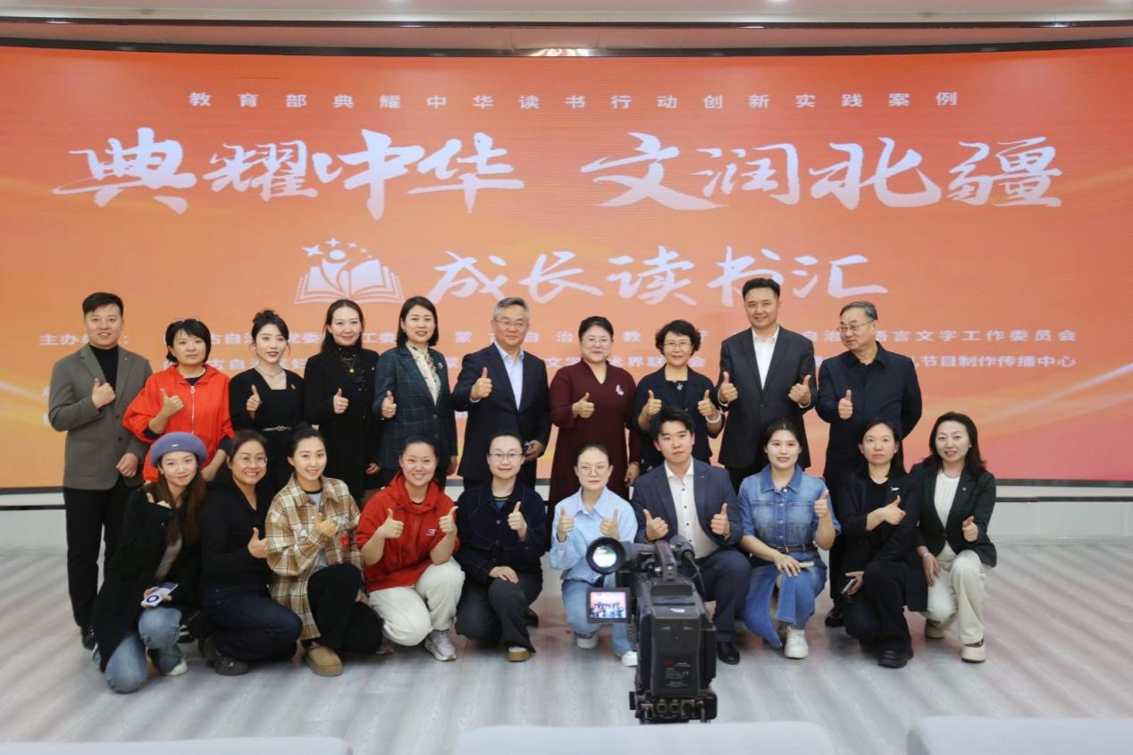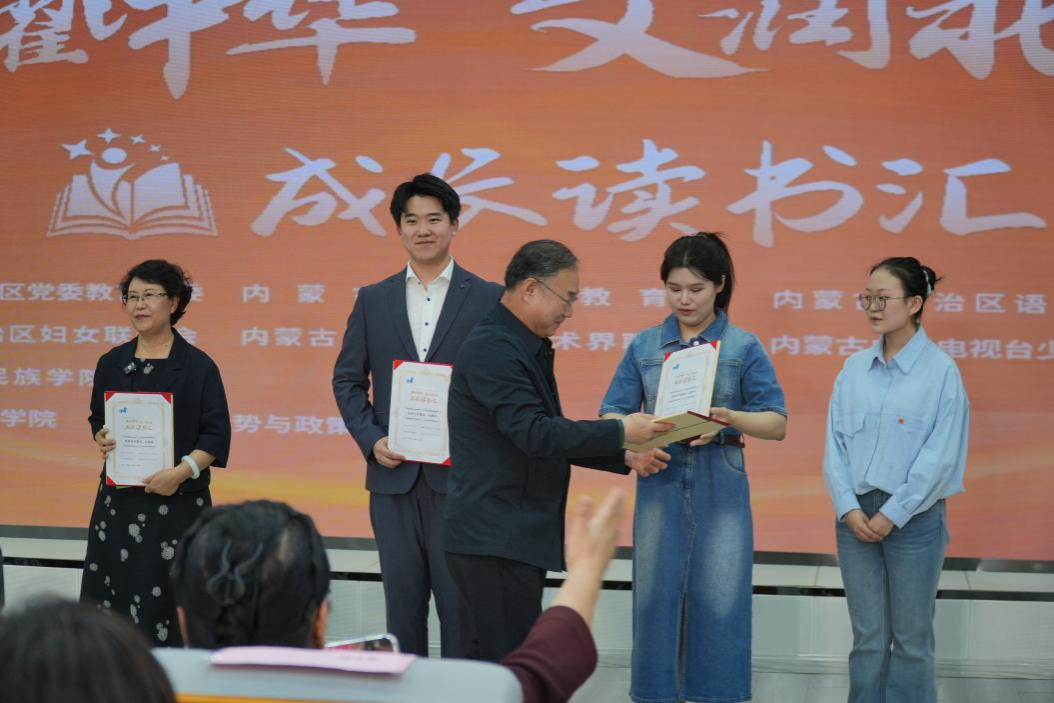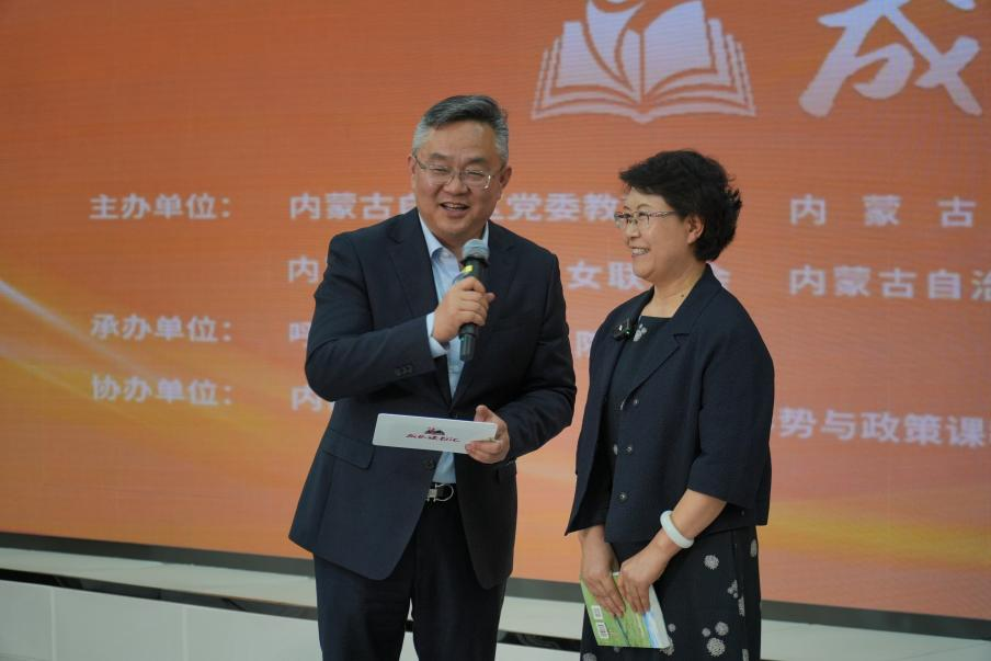 為進一步貫徹落實黨的二十大精神,加大國家通用語言文字推廣力度,傳承發展中華優秀傳統文化,深入實施“典耀中華”主題讀書行動。由內蒙古自治區黨委教育工委、內蒙古自治區教育廳、內蒙古自治區語言文字工作委員會、內蒙古自治區婦女聯合會、內蒙古自治區文學藝術界聯合會、內蒙古廣播電視臺少兒節目制作傳播中心共同主辦的“典耀中華 文潤北疆 成長讀書匯”走進呼和浩特民族學院活動在世界讀書日到來之際如期舉辦,欄目組與師生們一起開啟一場讀書盛宴。內蒙古廣播電視臺少兒節目制作傳播中心主任王松筠、副主任高博,內蒙古作家協會干部奎宇軒等相關單位領導出席活動。校黨委副書記格根哈斯以活動輪值會長身份出席活動。校黨委委員、宣傳部部長張海峰簡要介紹了活動準備情況,并分享了收獲。