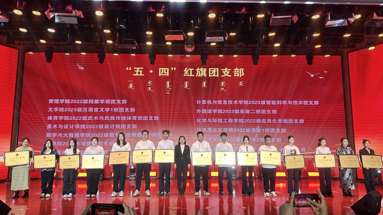 4月28日,學校舉辦“青春為中國式現代化挺膺擔當”主題團日活動暨2024年度共青團工作表彰大會。校黨委書記劉九萬,黨委副書記、校長王敏,黨委副書記格根哈斯,黨委委員、副校長高喜天,黨委委員、副校長劉瑞鴻,黨委委員、副校長額爾敦布和,黨委委員、副校長雙虎出席活動并為獲獎單位及個人頒獎。各部門、各學院負責人,各學院黨團總支書記、輔導員,獲獎師生及學生代表共670余人參會。