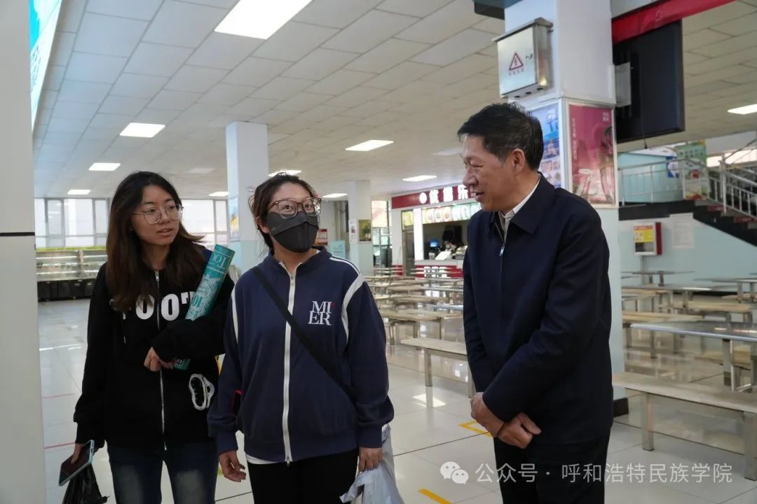 “食堂的飯菜感覺怎么樣?”劉九萬與用餐學生親切交流,深入了解學生的所需所感所求。他強調,學生飲食事關學生健康成長,必須嚴格遵守食品安全標準,不斷提升餐飲服務質量,充分保證學生營養膳食。