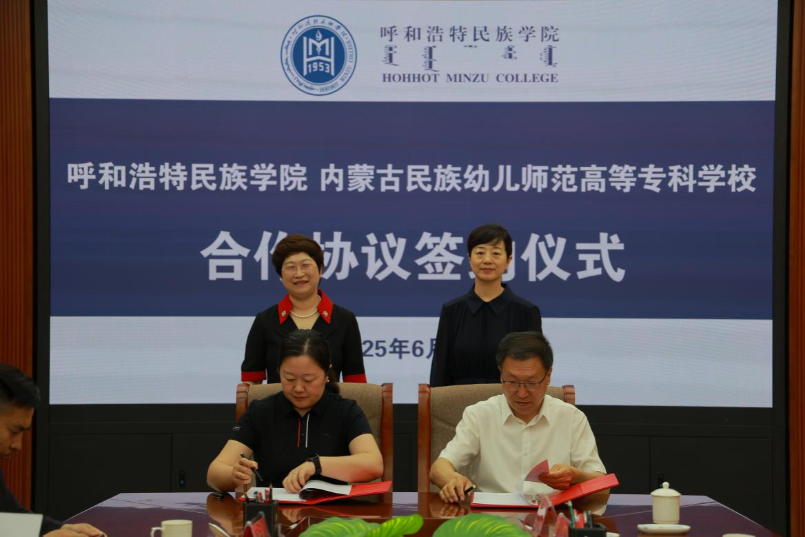 6月9日,內蒙古民族幼兒師范高等專科學校黨委副書記、校長李春暉一行來校考察調研并簽署合作協議。校黨委書記劉九萬在學校鑄牢中華民族共同體意識教育館與李春暉一行作了深入交流。黨委副書記、校長王敏,黨委委員、副校長高喜天,黨委委員、副校長劉瑞鴻出席了簽約儀式。會議由高喜天主持。