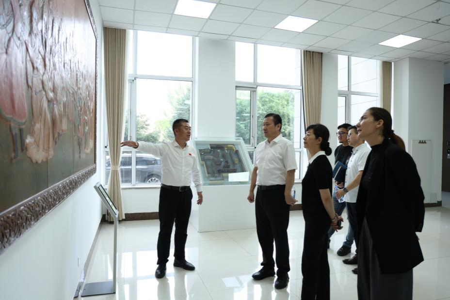 座談會(huì)結(jié)束后,復(fù)評專家組一行分別深入基地辦公場所、資料室、非物質(zhì)文化遺產(chǎn)作品展示場館、鑄牢中華民族共同體意識(shí)教育館、校史館、非遺布魯陳列館等教學(xué)科研場所對基地建設(shè)情況進(jìn)行實(shí)地考察,并深入美術(shù)與設(shè)計(jì)學(xué)院非遺課堂、體育學(xué)院非遺選修課堂,觀摩課堂教學(xué)活動(dòng),多維度全方位了解基地建設(shè)和非遺工作開展情況。