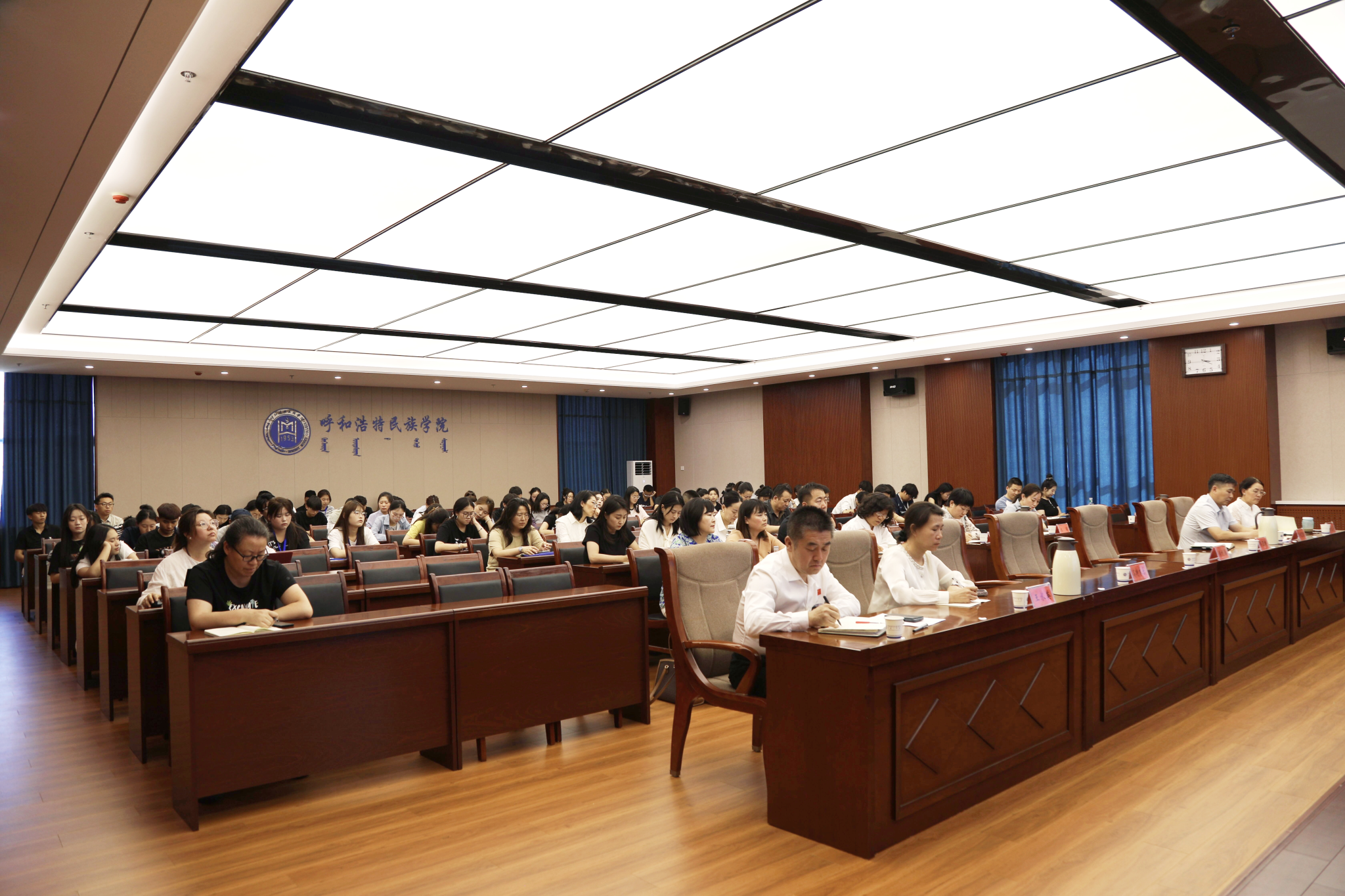 為深入貫徹落實習近平總書記關于宗教工作的重要講話和自治區宗教工作專題會議精神,加強和改進學校宗教工作,強化學校各級干部、教師、學生對黨的宗教理論、政策和相關知識的培訓,6月19日,我校黨委統戰部聯合黨委學生工作部召開專題思政工作講座暨2025年第三期輔導員沙龍,邀請內蒙古大學黨委委員、統戰部部長斯琴高娃教授作宗教工作專題報告。各二級學院黨總支書記、統戰委員、輔導員、班主任、學生干部代表150人聆聽報告。報告會由黨委委員、統戰部部長朝格吉樂圖主持。