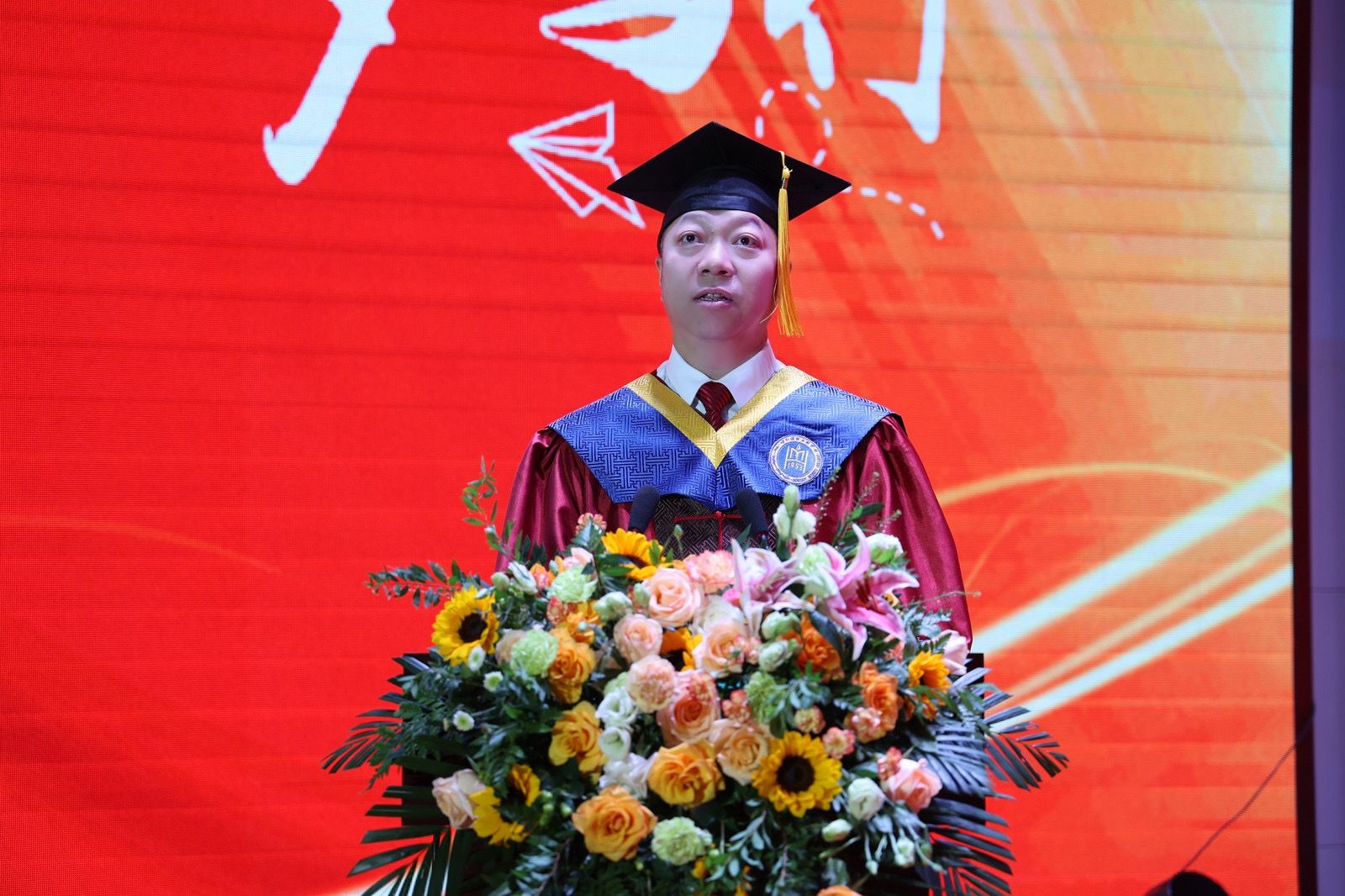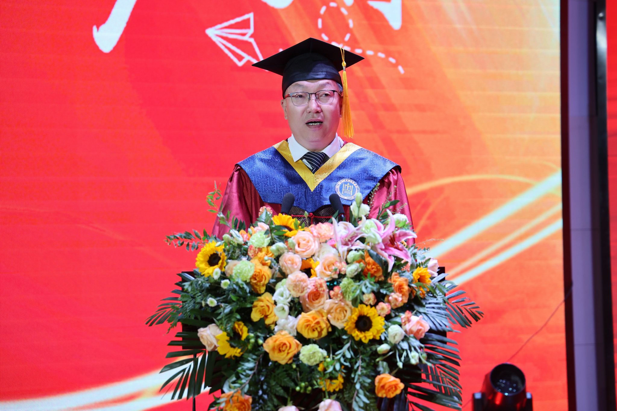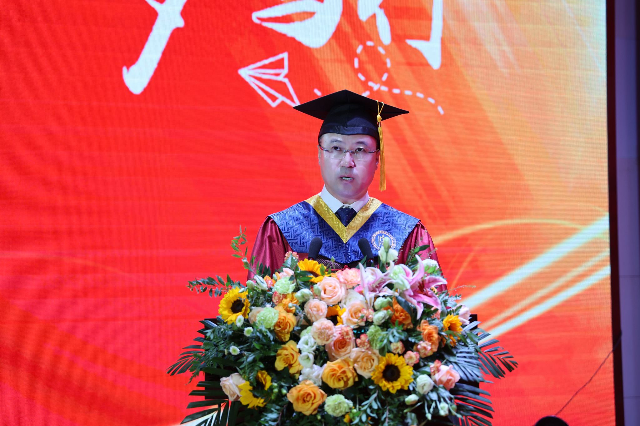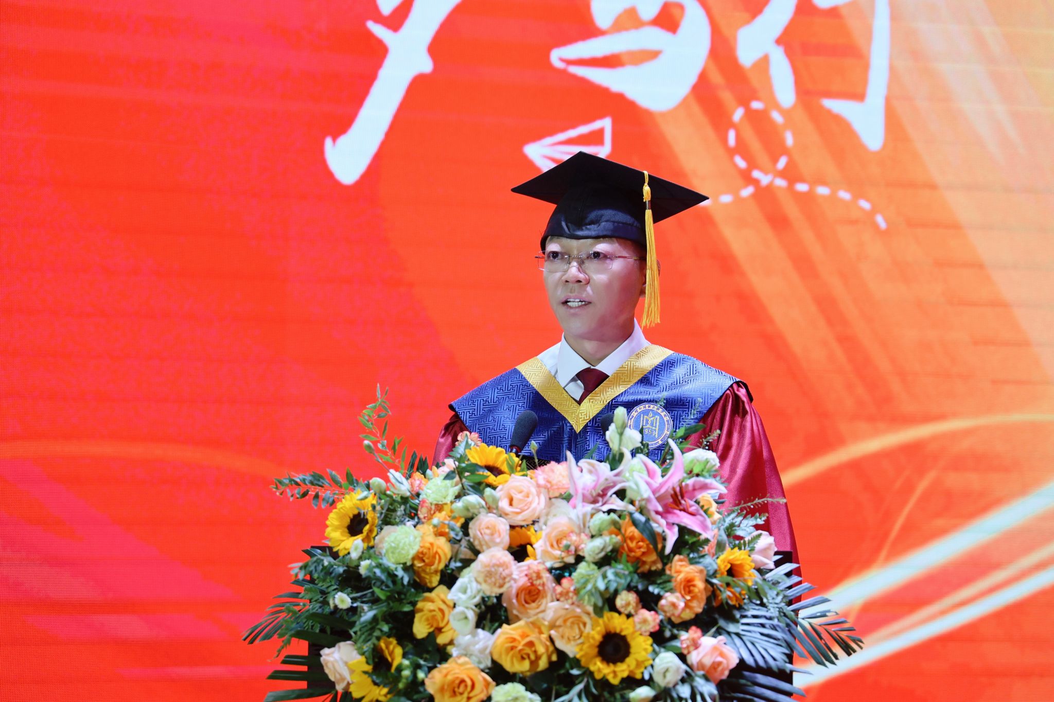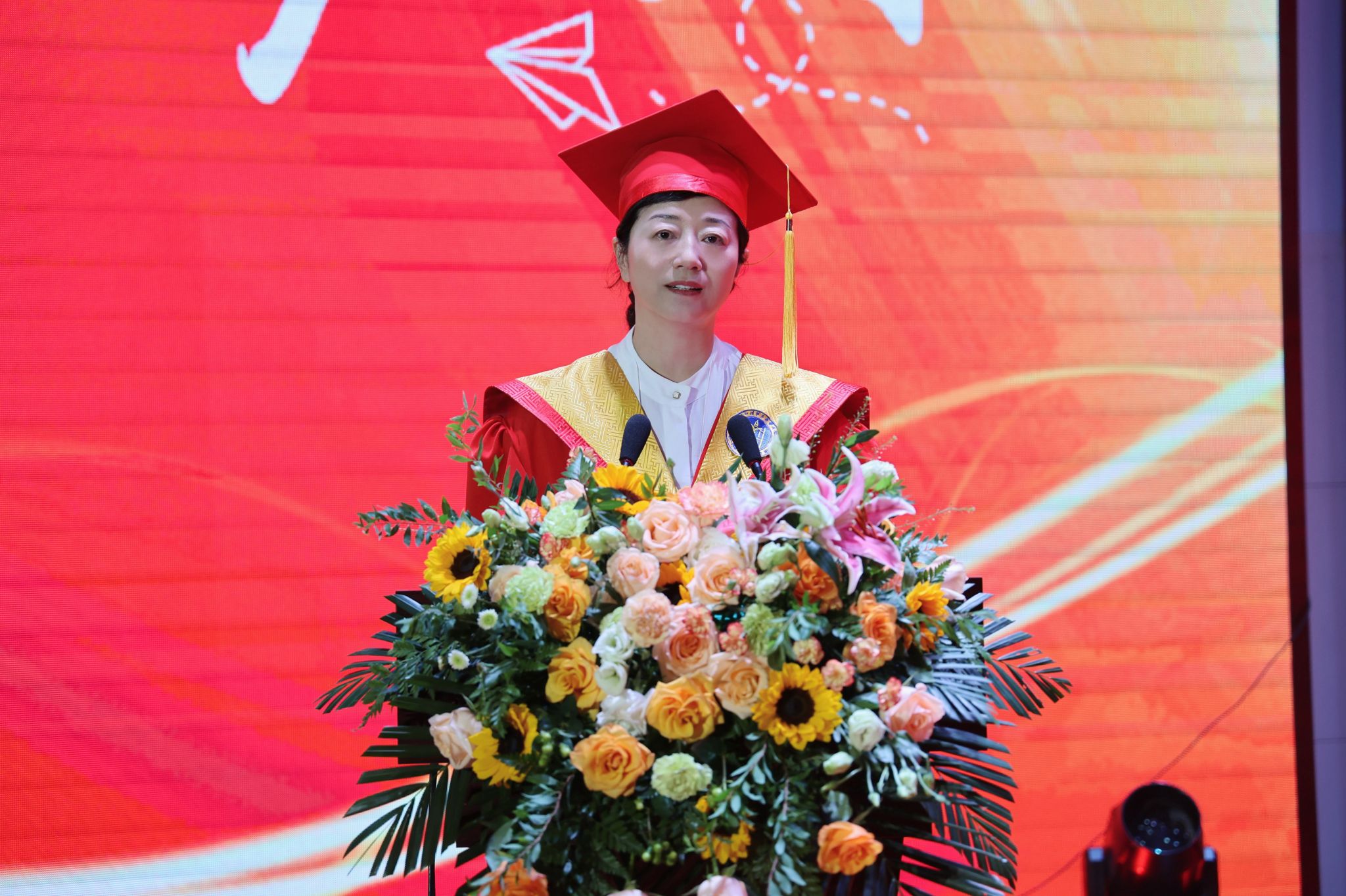 王敏校長在題為《奮楫啟航向星辰大海 逐夢篤行譜青春華章》的畢業(yè)致辭中,回顧了即將畢業(yè)的民院學(xué)子們在校期間經(jīng)歷的建校70周年慶典和所見證的學(xué)校獲批碩士學(xué)位授予單位的歷程,并肯定學(xué)生在學(xué)術(shù)科研、比賽競賽、社會實踐方面取得的優(yōu)異成績,點贊學(xué)子們投身基層建設(shè)家鄉(xiāng),參軍入伍保家衛(wèi)國的時代擔(dān)當(dāng)。她希望畢業(yè)生們,要胸懷大局,做愛國奉獻(xiàn)者,傳承學(xué)校民族團(tuán)結(jié)基因。要腳踏實地,從平凡事做起,踐行 “靠得住、下得去、干得好”的品格。要勤學(xué)不輟,以終身學(xué)習(xí)適應(yīng)時代,提升跨界能力。