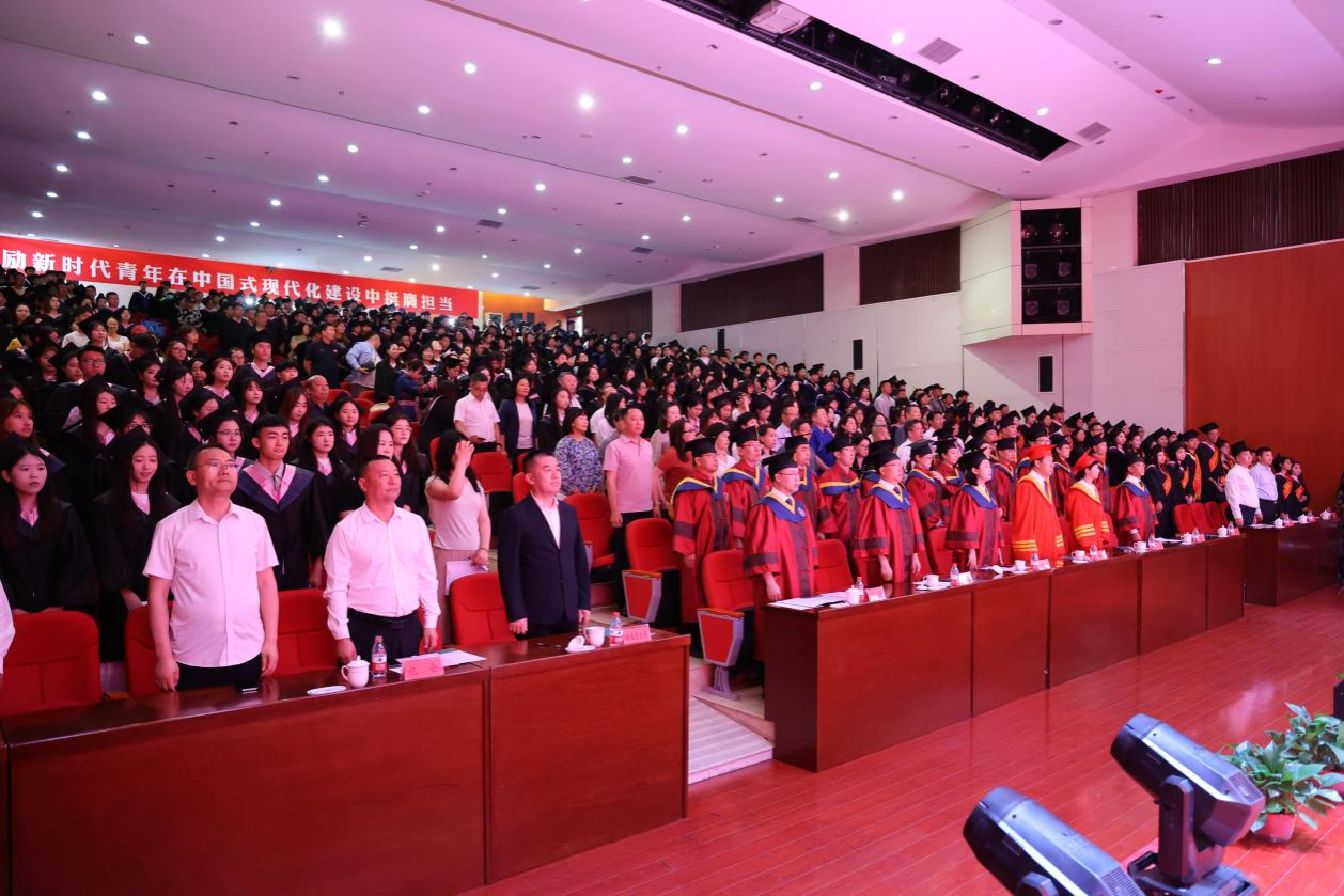 畢業(yè)典禮在莊嚴(yán)的國歌聲中拉開了帷幕,全體師生高唱國歌,畢業(yè)典禮正式開始。