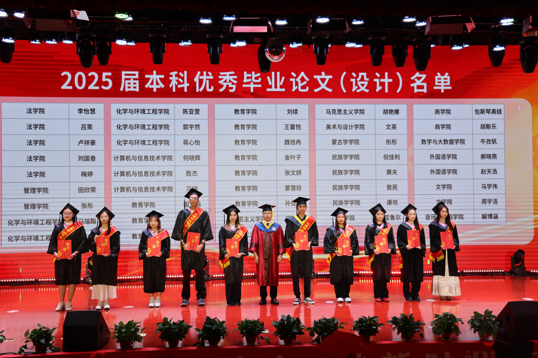 額爾敦布和宣讀《關(guān)于表彰2025屆本科優(yōu)秀畢業(yè)論文(設(shè)計)及優(yōu)秀指導(dǎo)教師的決定》和畢業(yè)決定及學(xué)士學(xué)位授予決定。