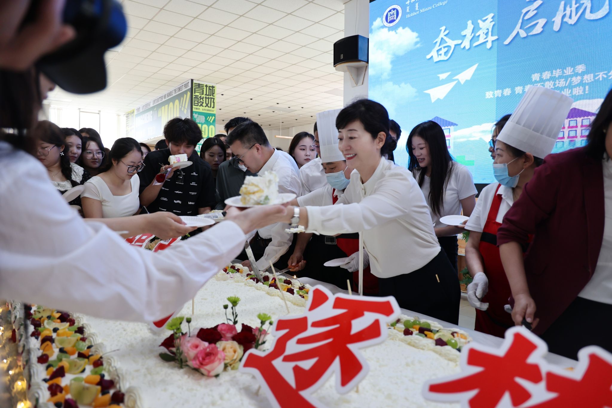 校領導們?yōu)楫厴I(yè)生切蛋糕、送祝福。他們與畢業(yè)生親切交談,鼓勵大家在新的人生征程上繼續(xù)拼搏,勇敢逐夢。校領導們的關懷讓畢業(yè)生們深受感動,現(xiàn)場氣氛溫馨而熱烈,充滿了濃濃的師生情誼。