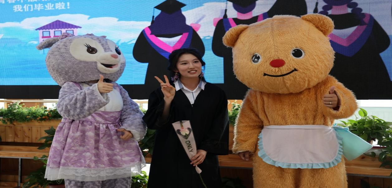 活動現(xiàn)場,身著玩偶服裝的工作人員成為一道獨特的風景線。他們熱情洋溢,為畢業(yè)生們送上鮮花,寓意著為畢業(yè)生們的未來“錦上添花”。手捧鮮花的畢業(yè)生們臉上洋溢著幸福的笑容,紛紛與可愛的玩偶互動合影,用鏡頭定格這美好的瞬間,留下青春的珍貴記憶。