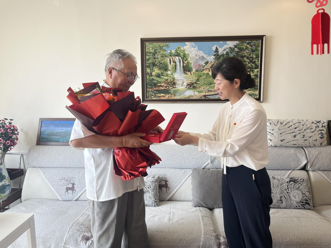 在慶祝中國共產黨成立104周年之際,為增強黨員榮譽感、歸屬感和使命感,7月1日,校黨委副書記、校長王敏,校黨委副書記格根哈斯分別走訪慰問老黨員,并上門舉行莊重簡樸的“光榮在黨50年”紀念章頒發儀式,向老黨員們致以黨的深切關懷和崇高敬意。