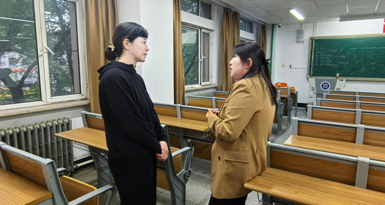 課間,王敏與兩位教師進行了交流,她對兩位教師在教學狀態、教學準備、教學方式等方面的表現給予肯定,也在教學設計等方面提出了優化建議。她還與聽課學生親切溝通,了解他們的專業學習情況及對學校教育教學工作的意見建議。
