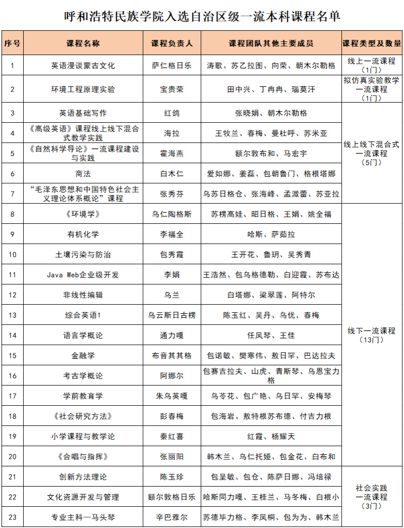 我校23門課程入選第三批內蒙古自治區一流本科課程