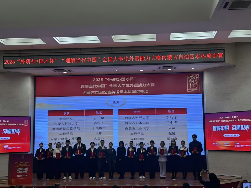 11月1日至2日,由自治區(qū)教育廳主辦,內(nèi)蒙古高等教育學(xué)會外語教學(xué)與研究分會、外語教學(xué)與研究出版社協(xié)辦,內(nèi)蒙古工業(yè)大學(xué)承辦的2025“外研社·國才杯”“理解當(dāng)代中國”全國大學(xué)生外語能力大賽自治區(qū)選拔賽在內(nèi)蒙古工業(yè)大學(xué)圓滿落幕。