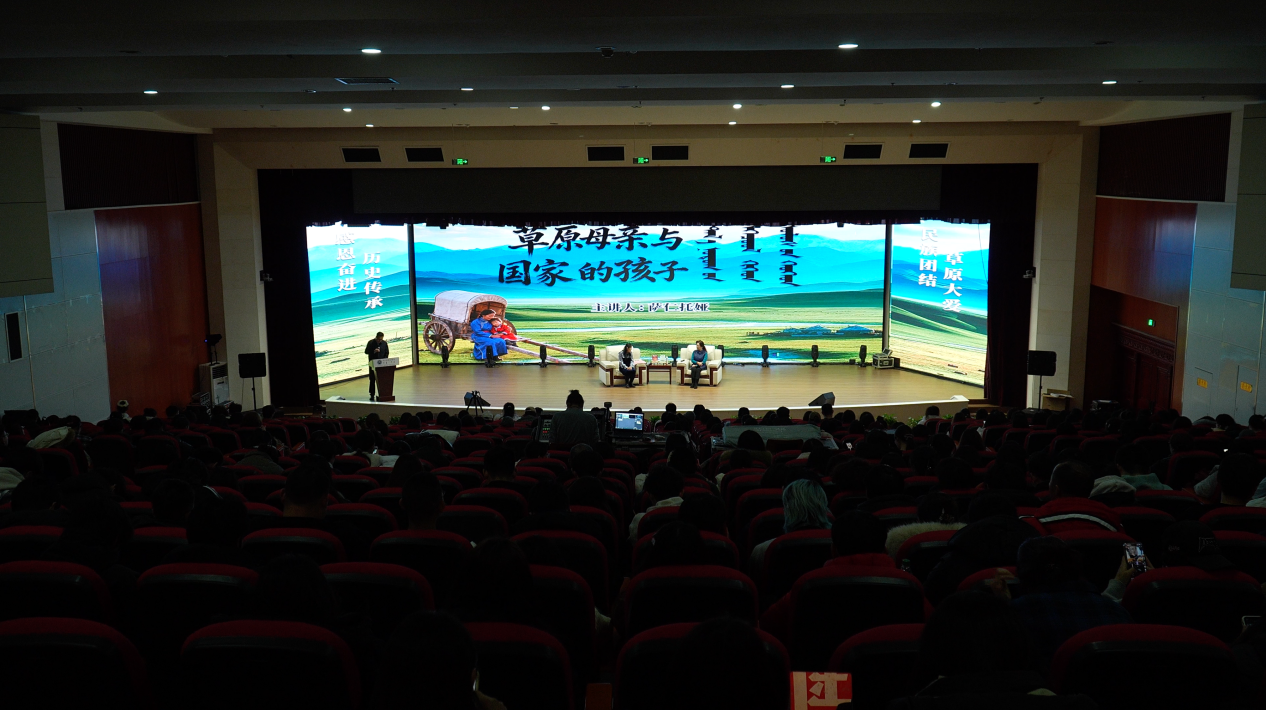 為深入貫徹黨的二十屆四中全會(huì)精神,鑄牢中華民族共同體意識(shí),深化校園文化建設(shè),以文化人、以文育人,助力學(xué)生厚植家國(guó)情懷。11月28日下午,國(guó)家一級(jí)作家、原內(nèi)蒙古電影家協(xié)會(huì)副主席薩仁托婭受邀走進(jìn)我校,以“草原母親與國(guó)家的孩子”為主題,開啟“文潤(rùn)民院”之系列活動(dòng)(三)讀書分享會(huì)。校黨委委員、宣傳部部長(zhǎng)張海峰向大家簡(jiǎn)要介紹了薩仁托婭。讀書分享會(huì)環(huán)節(jié)由文學(xué)院教師王佳主持。全校師生代表、文學(xué)愛(ài)好者共600余人現(xiàn)場(chǎng)聆聽,共同沉浸于跨越半個(gè)世紀(jì)的溫暖敘事中。