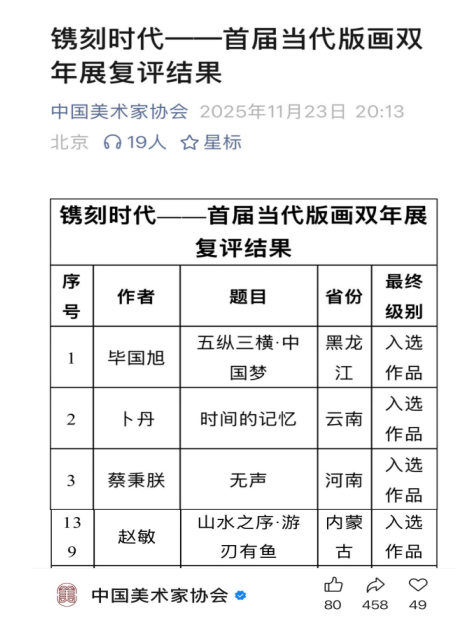近日,我校美術(shù)與設(shè)計學(xué)院版畫專業(yè)阿茹娜老師指導(dǎo)的2025屆版畫專業(yè)2班畢業(yè)生趙敏,其畢業(yè)創(chuàng)作水印木刻版畫作品《山水之序·游刃有魚》成功入選“鐫刻時代—首屆當(dāng)代版畫雙年展”。該展覽由中國美術(shù)家協(xié)會主辦,是全國版畫領(lǐng)域極具影響力的國家級重要展覽。