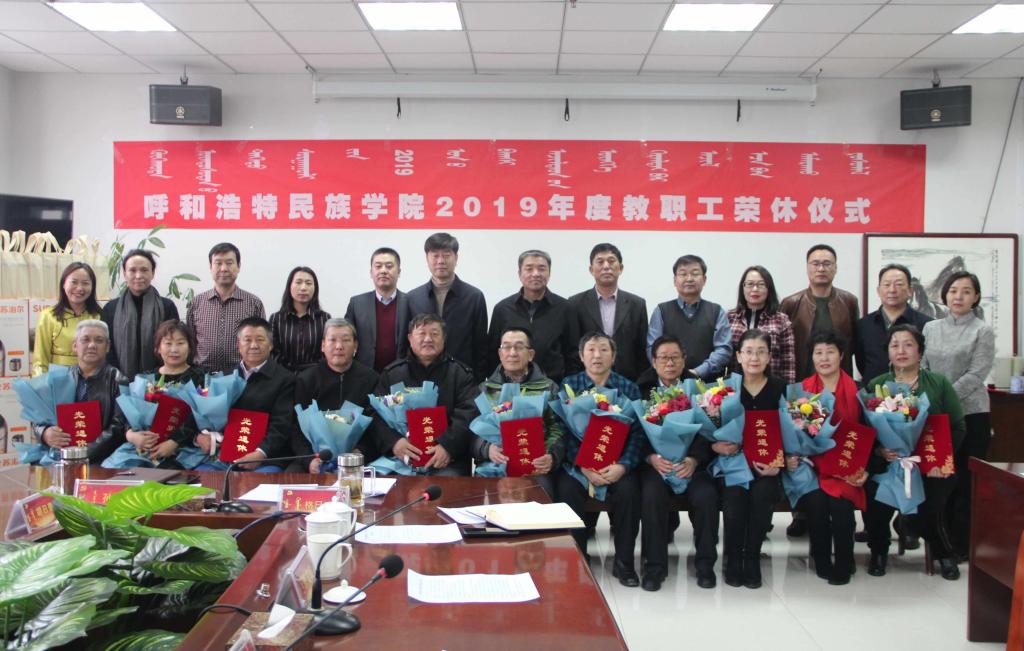 12月25日下午,學校2019年教職工榮休儀式在綜合樓1102會議室舉行。校黨委書記孫國權,黨委副書記、校長格日樂圖出席儀式,2019年退休教職工、退休教職工所在單位負責人、分工會主席參加儀式。邢文岐主席主持儀式。