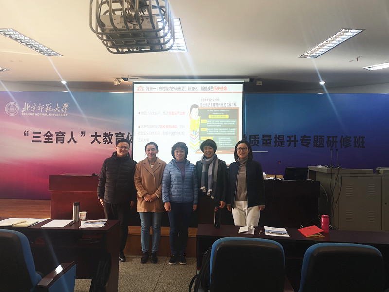 按照學校“不忘初心、牢記使命”主題教育中思想政治工作整改落實需要,結合思想政治工作專項課題培訓,12月14日至15日,學校黨委副書記胡春梅帶領公共管理學院黨總支書記海霞,黨委統戰部副部長高娃,馬克思主義學院黨總支副書記、副院長吳美榮,黨政辦公室相關工作人員一行參加了由北京師范大學馬克思主義學院舉辦的“‘三全育人’大教育體系構建與思政課教學質量提升專題研修班”。