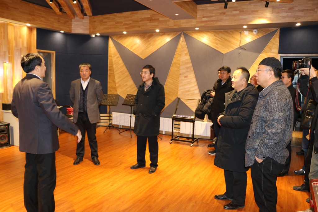 隨后,調研一行人員參觀了公司的音樂錄音棚、攝影棚、排練廳以及在線音樂資源等工作室。
