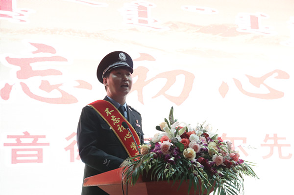 為進一步推進“不忘初心、牢記使命”主題教育,深入開展先進典型學習教育,11月11日晚,學校在圖書館二樓報告廳舉辦第五場形勢政策報告——全國公安系統一級英模寶音德力格爾先進事跡報告會,本場報告會也我校第二屆大學生文化藝術月重要活動內容。學校黨委副書記胡春梅、副校長阿拉坦倉、紀委書記朝克出席報告會,烏拉特后旗旗委副書記閆曉云一行15人蒞臨報告會現場。學校副處級以上干部、師生代表共700人共同聆聽了報告。報告會由黨委副書記胡春梅主持。