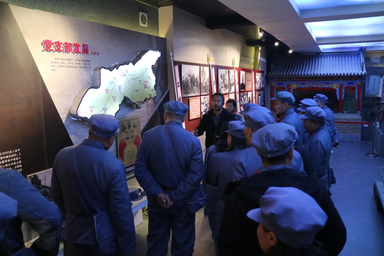 接著,在教育基地陳琪老師的引領下,參觀了老牛坡黨支部舊址、老牛坡黨支部展館、老牛坡紅色文化廣場、北堡村抗戰等遺址,青龍洞山生態文明建設現場教學點。