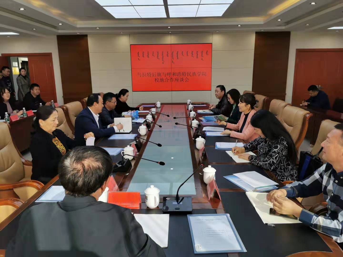 在實(shí)地查看了民族教育園區(qū)中學(xué)、小學(xué)、幼兒園具體情況后,雙方就進(jìn)一步推進(jìn)校地合作召開座談會(huì)。座談會(huì)上校地合作相關(guān)人員踴躍發(fā)言,就推進(jìn)校地進(jìn)一步合作提出了具體的意見建議。納麗娜副校長表示,校地合作是互利共贏的好事,針對(duì)新的合作意向,從民族文化的傳承與發(fā)展、特色專業(yè)建設(shè)、創(chuàng)新創(chuàng)業(yè)的開發(fā)、基地建設(shè)等多個(gè)方面都可推進(jìn)合作。我校將緊抓合作的良好契機(jī),為人才培養(yǎng)質(zhì)量的提升搭建平臺(tái),進(jìn)一步發(fā)揮智庫作用,努力服務(wù)地方經(jīng)濟(jì)社會(huì)發(fā)展。旗委書記白海林在講話中表示,近年來我旗經(jīng)濟(jì)等各方面發(fā)展日新月異,但教育、醫(yī)療等發(fā)展短板也日益凸顯,人才缺乏成為制約。呼和浩特民族學(xué)院與我旗開展校地合作,對(duì)補(bǔ)齊我旗發(fā)展短板有著至關(guān)重要的作用,旗委、政府將全力推進(jìn)校地合作。下一步希望通過雙方的精誠合作,為烏拉特后旗今后的高質(zhì)量發(fā)展打下堅(jiān)實(shí)基礎(chǔ)。