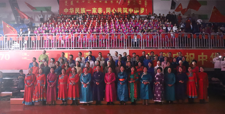 歌舞縈繞,紅旗飄揚。9月29日晚7點,呼和浩特民族學院“輝煌七十載 奮進新時代”——慶國慶文藝晚會在體育館三樓隆重舉行。3000余名民院師生齊聚一堂,為中華人民共和國成立70周年高歌歡慶,向祖國母親獻上最真誠的祝福。