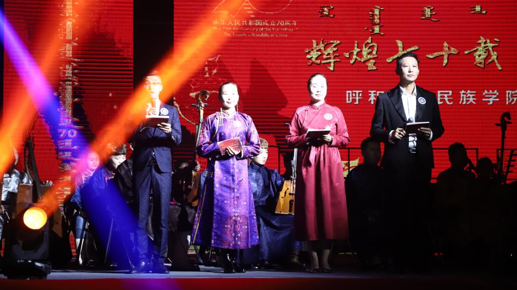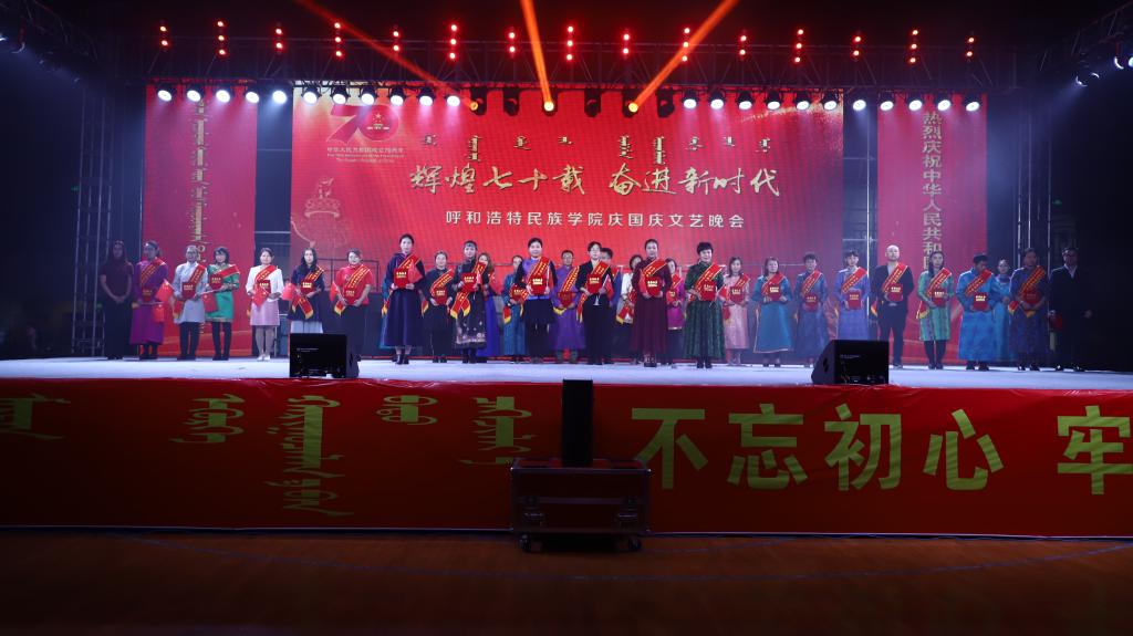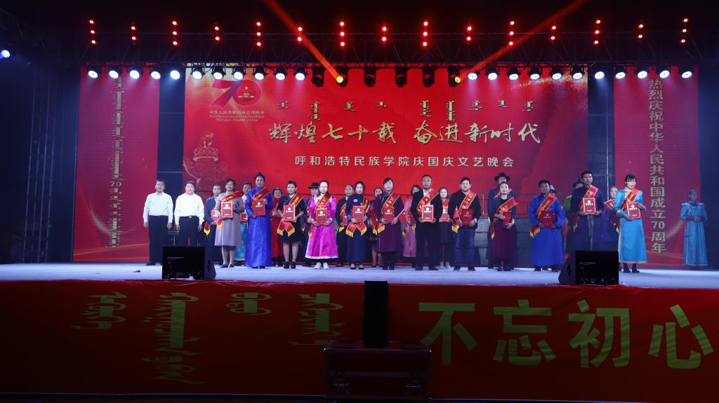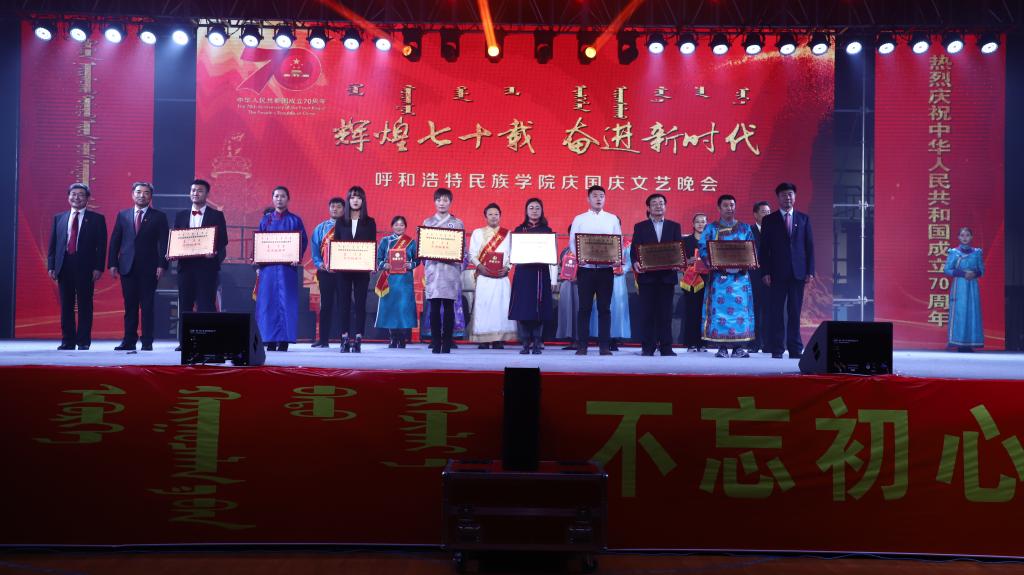 晚會隆重表彰了學校“三育人”先進個人、民族團結進步先進集體和先進個人、首屆課程思政與第十屆青年教師技能大賽獲獎教師等。七十年風雨兼程,六十六載初心不改,呼和浩特民族學院師生決心在筑夢強校的路上,重整行裝再出發,勇挑時代重任,為學校事業的發展、為祖國的繁榮昌盛再立新功。