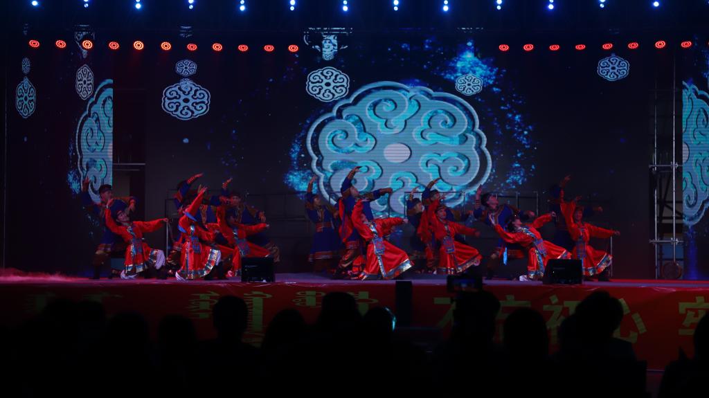 演出現場燈光璀璨,洋溢著歡樂喜慶的氣氛。看臺坐滿了手搖五星紅旗的民院師生,全校6000余名師生通過網絡直播同步收看演出。