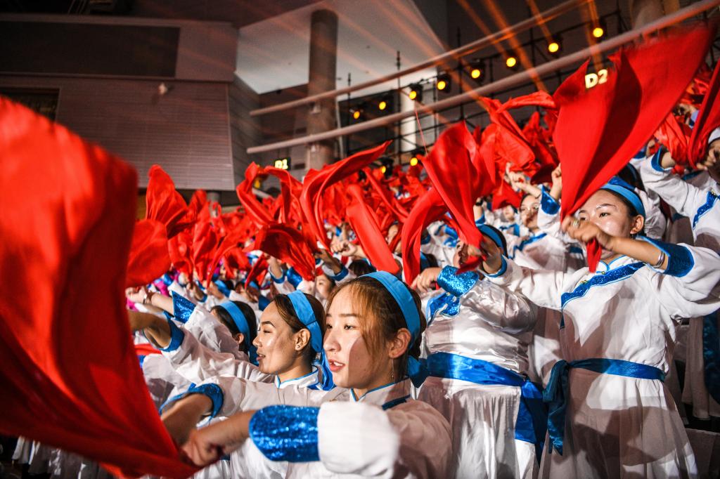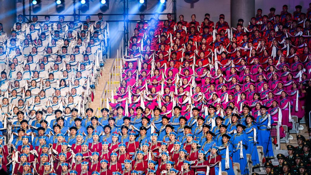 我校合唱團在著名歌唱家德德瑪老師的領唱下,共同唱響《美麗的草原我的家》,整齊劃一的動作,悠揚婉轉的歌聲,充分展現了民院學子的愛國熱情和精神風貌。并與現場所有合唱團共同演唱《各族人民心連心》、《守望相助》、《不忘初心》 、《我和我的祖國》、《歌唱祖國》等經典紅色曲目。我校合唱團用歌聲抒發喜迎中華人民共和國成立70周年的自豪與歡樂,唱出對偉大祖國母親的崇高祝福,共同唱響共產黨好、社會主義好、改革開放好、偉大祖國好、民族團結好的時代強音。