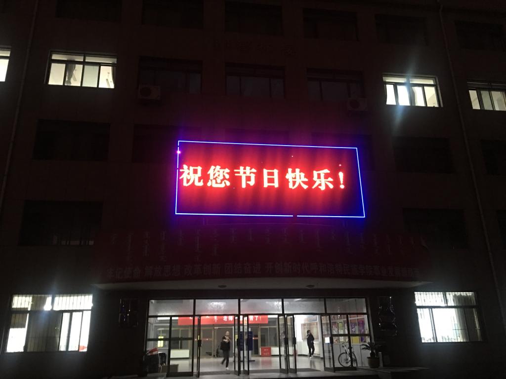 另外,活動當天學校LED電子屏用蒙漢雙語打出了“老師,您辛苦了,祝您節(jié)日快樂”等字樣,營造濃厚的節(jié)日氛圍。