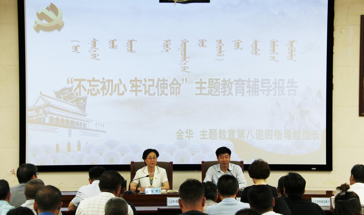 報告會上,金華組長根據習近平總書記在內蒙考察并指導“不忘初心、牢記使命”主題教育時提出的“四個到位”精神,結合巡回指導第一批主題教育工作實際,從四個方面就如何開展好主題教育進行了深入的闡述。一要切實提高政治站位,充分認識開展此次主題教育的重大意義。二要準確把握主題教育的目標任務、總要求。三要緊密結合,把學習教育、調查研究、檢視問題、整改落實貫穿始終。四要加強組織領導。