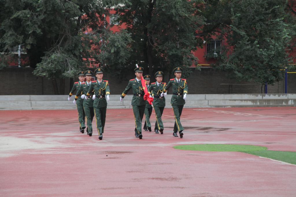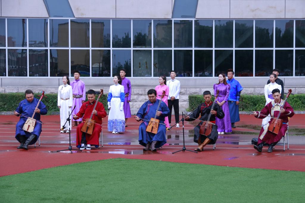 微雨朦朦,早6時30分身著民族服裝的同學們便早早的來到操場等候升旗儀式。早7時,升旗儀式正式開始,颯爽英姿的升旗手和護旗手邁著整齊的步伐走向廣場。升旗手將國旗迎風展開,伴隨著雄壯的馬頭琴《義勇軍進行曲》伴奏,鮮艷的五星紅旗冉冉升起。參加儀式的全體人員肅然而立,行注目禮,愛國愛校之情在此時激蕩澎湃。