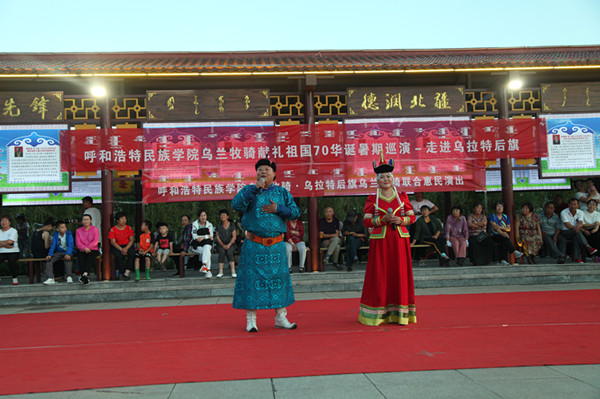 7月15日-20日,呼和浩特民族學院烏蘭牧騎赴巴彥淖爾市烏拉特中旗、烏拉特后旗開展“獻禮祖國70華誕”暑期巡演活動。