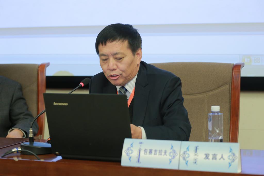 開(kāi)幕式上,格日樂(lè)圖校長(zhǎng)致歡迎辭。他表示,學(xué)校致力于民族優(yōu)秀傳統(tǒng)文化藝術(shù)的繼承和研究,大力弘揚(yáng)社會(huì)主義核心價(jià)值觀,推動(dòng)中華民族優(yōu)秀傳統(tǒng)文化的繁榮發(fā)展。學(xué)校此次和中國(guó)社會(huì)科學(xué)院蒙古學(xué)研究中心聯(lián)合主辦“民俗文化與一帶一路國(guó)家的民心相通”學(xué)術(shù)研討會(huì),既是一次課題研究的中期探討,也是一次研究成果展示,更是學(xué)校傳承優(yōu)秀文化、服務(wù)社會(huì)的有益探索。研討會(huì)的成功召開(kāi),必將對(duì)進(jìn)一步推動(dòng)民俗文化與“一帶一路”建設(shè)起到積極的作用,為學(xué)校科學(xué)研究帶來(lái)新氣象,也為來(lái)自各地的學(xué)者進(jìn)一步了解內(nèi)蒙古、了解蒙古族民俗風(fēng)情、了解呼和浩特民族學(xué)院搭建了平臺(tái)。