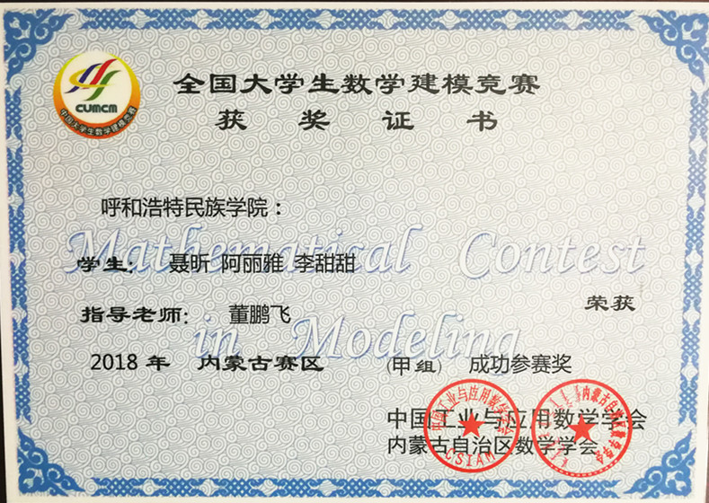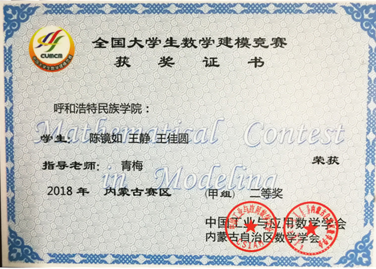 全國大學生數(shù)學建模競賽是由中國工業(yè)與應用數(shù)學學會和全國大學生數(shù)學建模組委會共同舉辦的目前全國規(guī)模最大的大學生競賽類活動。2018年9月,我校數(shù)學系首次組織學生隊伍參加2018年度全國大學生數(shù)學建模競賽,經(jīng)過充分準備、精心組織、激烈競爭,我校一支隊伍獲全國二等獎,一支隊伍獲內蒙古自治區(qū)賽區(qū)一等獎,兩支隊伍獲內蒙古自治區(qū)賽區(qū)二等獎,另有一支隊伍獲內蒙賽區(qū)成功參賽獎。